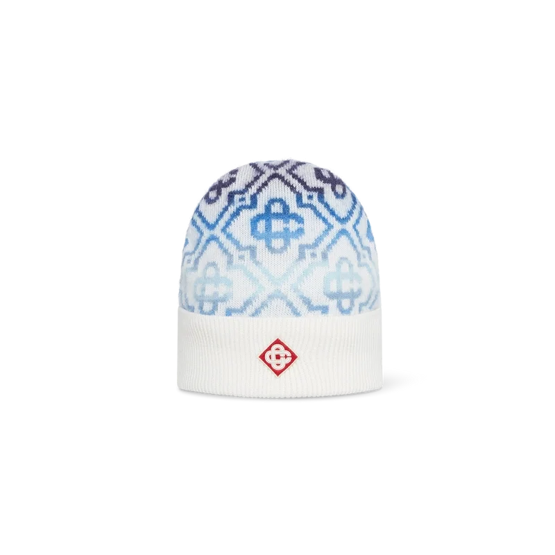 Die Space Dye Monogram Beanie ist aus einer luxuriösen Wollmischung gefertigt und ziert auf der Krone das charakteristische Monogramm des Hauses in einem blauen Farbverlauf, das aus Space-Dye-Garnen entsteht, welche Tiefe und Dimension verleihen. Abgerundet wird sie durch eine gerippte Krempe und das charakteristische Diamond Monogram des Hauses in der Mitte.