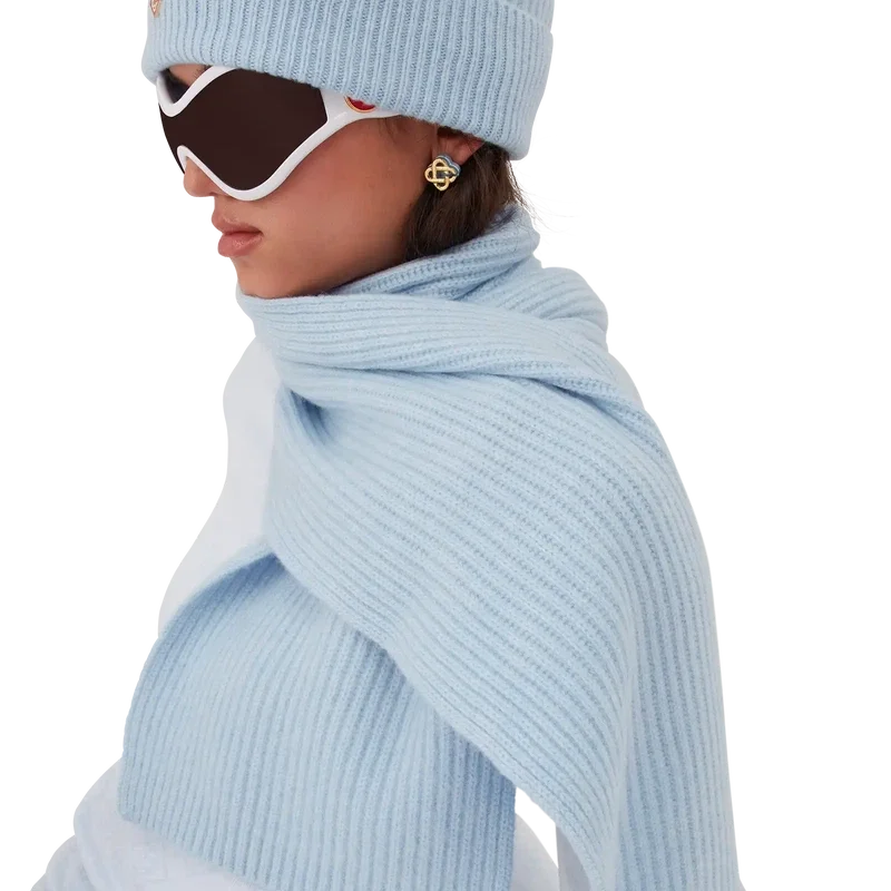 Der Ski-Schal ist ein raffiniertes Design aus weißem Rippenstrick, inspiriert vom unberührten Pulverschnee, der die ländlichen Dörfer Hokkaidos in Japan bedeckt. Das Design erinnert an frostbedeckte Bambushaine und Bauernhäuser in alpinen Tälern und verkörpert mit seiner präzisen Verarbeitung die Apras-Sport-Codes des Hauses.