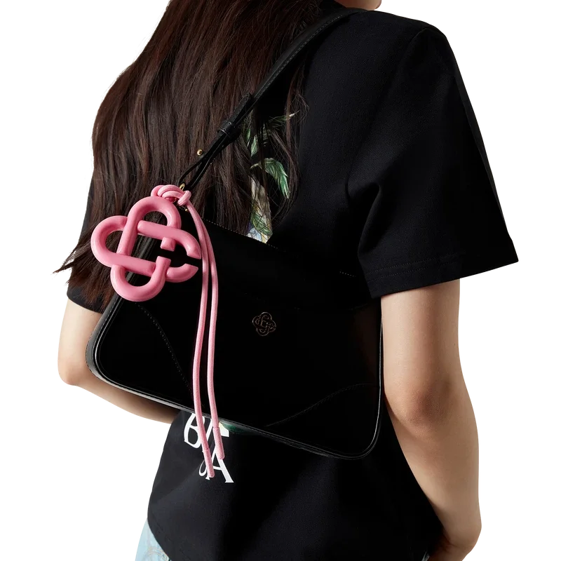 Der Cc-Logo-Anhänger ist ein Accessoire mit dem ineinander verschlungenen Cc-Logo des Hauses, gefertigt aus Silikonstoff. Komplett mit passender rosa Kordel zum einfachen Befestigen.