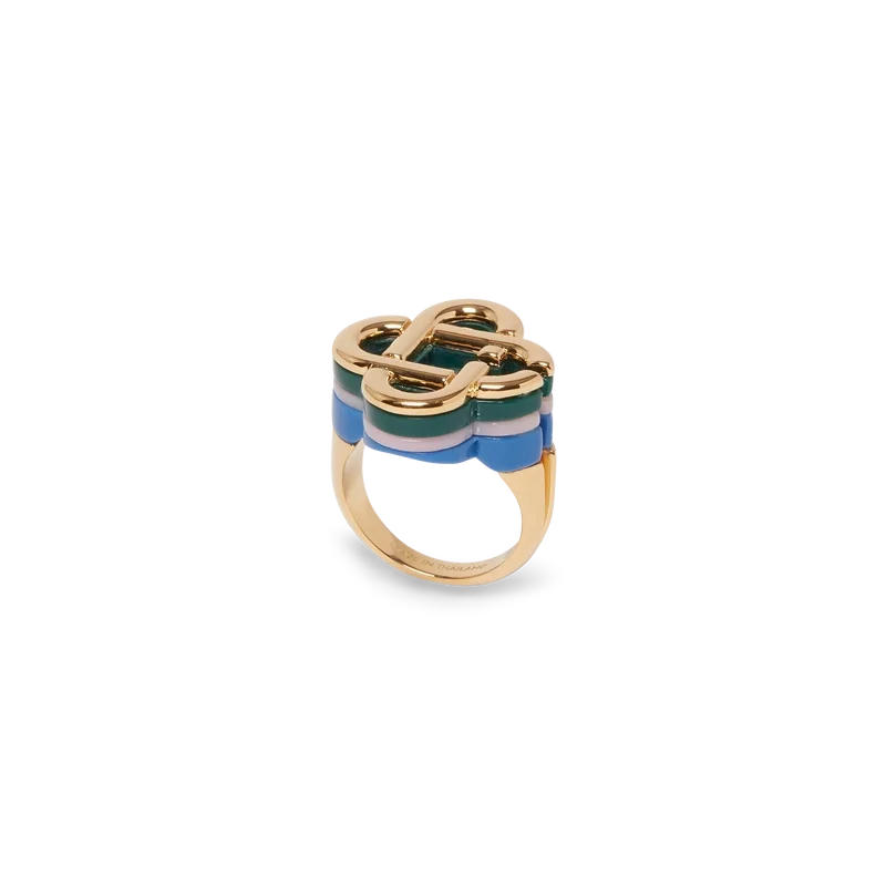 Der Hiking Stacked Ring zeigt das ineinander verschlungene „CC“-Logo von Casablanca in einem gestapelten Ringkopf. Abgerundet durch vergoldete Ringstangen. Dieses Schmuckstück wird mit einer Geschenkbox, einem Staubbeutel mit Markenlogo und einer Produktbroschüre geliefert.
