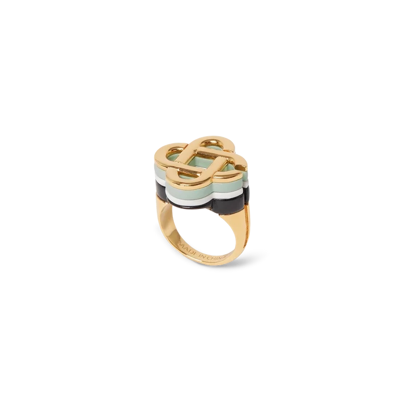 Der Hiking Stacked Ring zeigt das ineinander verschlungene „CC“-Logo von Casablanca in einem gestapelten Ringkopf. Abgerundet durch vergoldete Ringstangen. Dieses Schmuckstück wird mit einer Geschenkbox, einem Staubbeutel mit Markenlogo und einer Produktbroschüre geliefert.