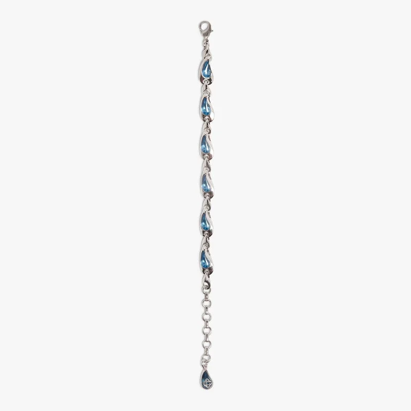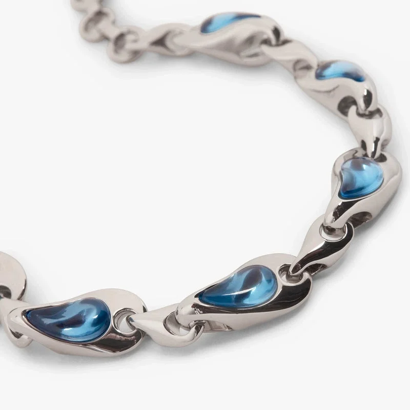 Das silber-blaue Wassertropfen-Armband ist ein elegantes Design aus Messing und Harz mit einem zarten Wassertropfen-Motiv in Silber- und Blautönen. Abgerundet durch eine raffinierte versilberte Kettengliedkonstruktion für einen edlen letzten Schliff.