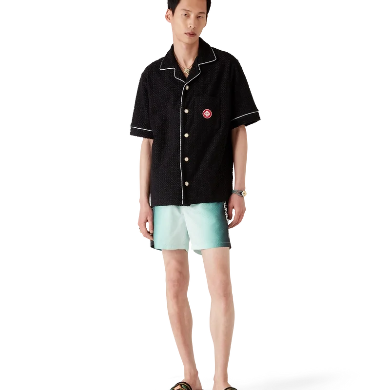 Die Gradient Jacquard-Shorts sind ein klassisches Design der Bademode aus einem technischen Gradient-Badematerial, das an der Seite mit dem charakteristischen Casablanca-Logo des Hauses verziert ist. Abgerundet durch einen elastischen Bund, einen innenliegenden Kordelzug, ein Futter, eine Innentasche und Seitentaschen in der Naht.
