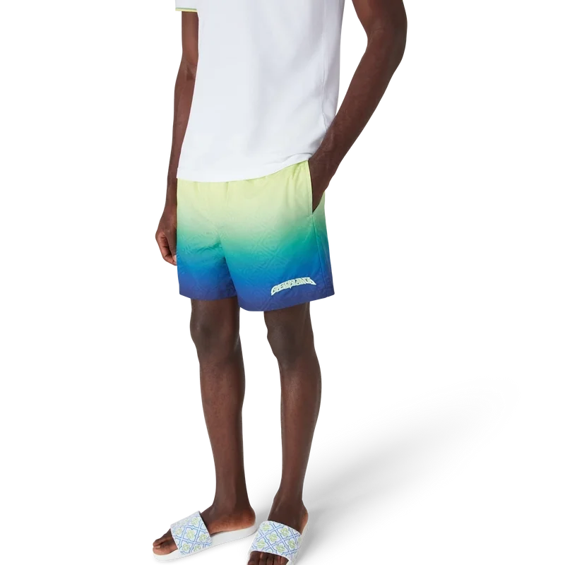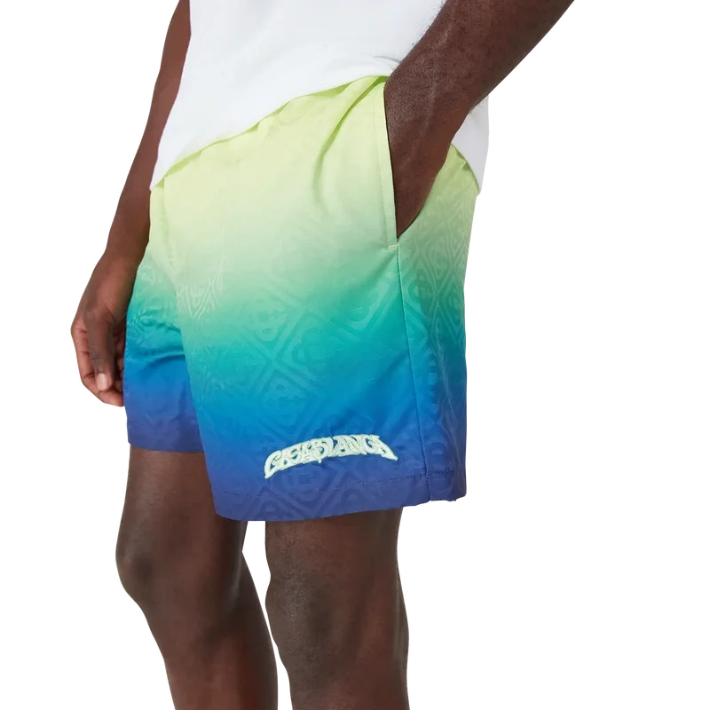 Die Gradient Monogram Shorts sind ein raffiniertes technisches Design mit Farbverlaufsdetails. Abgerundet durch einen elastischen Bund, einen Kordelzug, Seitentaschen in den Nähten und das charakteristische Monogramm-Muster des Hauses, das die raffinierte Apras-Sport-Eleganz verkörpert.