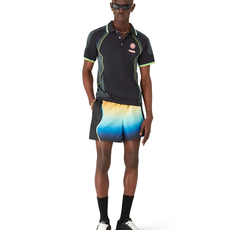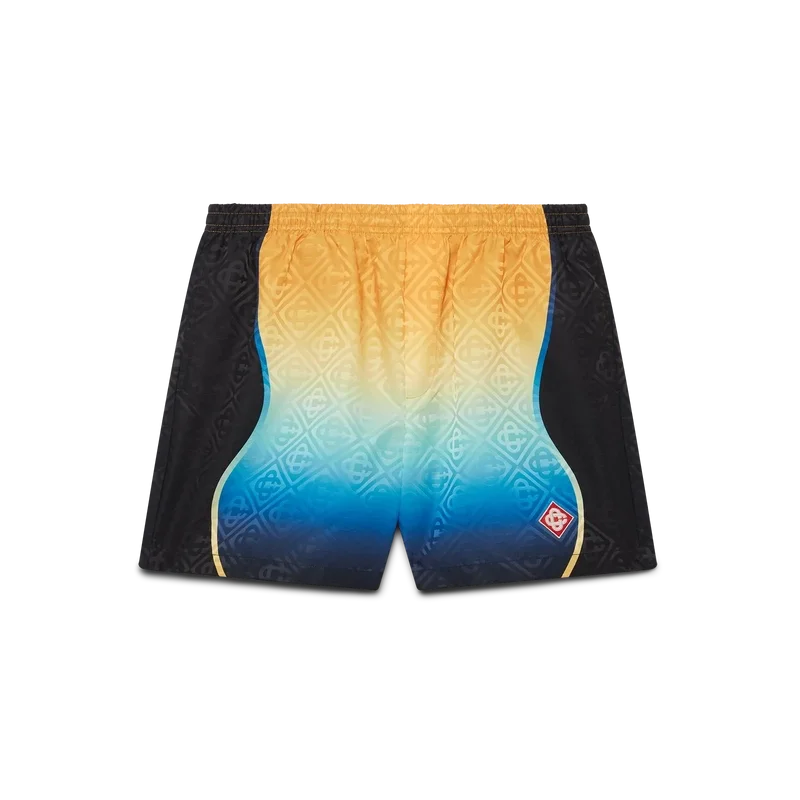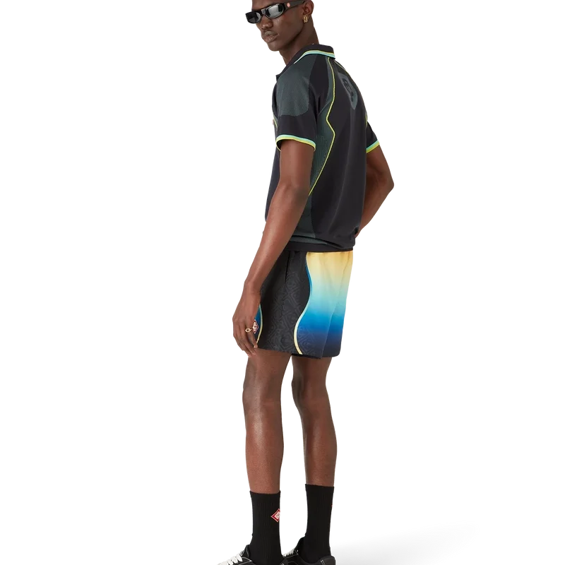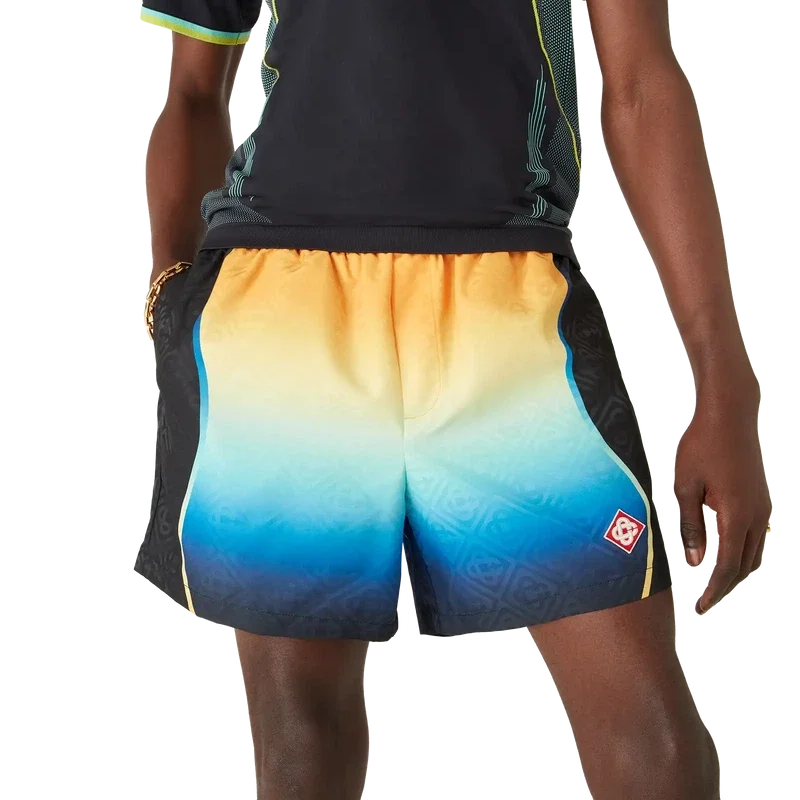 Die Gradient Jacquard Shorts zeichnen sich durch ein bedrucktes Design mit Farbverlauf aus, das von den lebhaften und auffälligen natürlichen Farbtönen der Pfeilgiftfrösche inspiriert ist. Die kräftigen Blau- und Gelbtöne dienen in der Natur als Warnsignal und werden in unseren Drucken mit derselben Absicht eingesetzt, Aufmerksamkeit zu erregen. Abgerundet durch einen elastischen Bund, einen integrierten Kordelzug, ein Netzfutter und eine Innentasche.