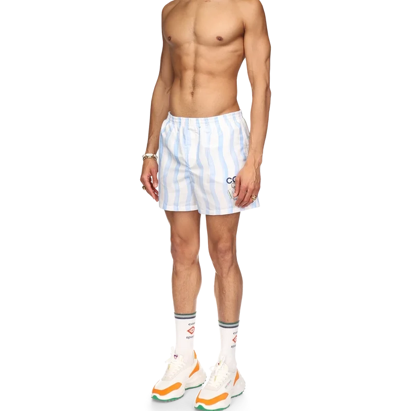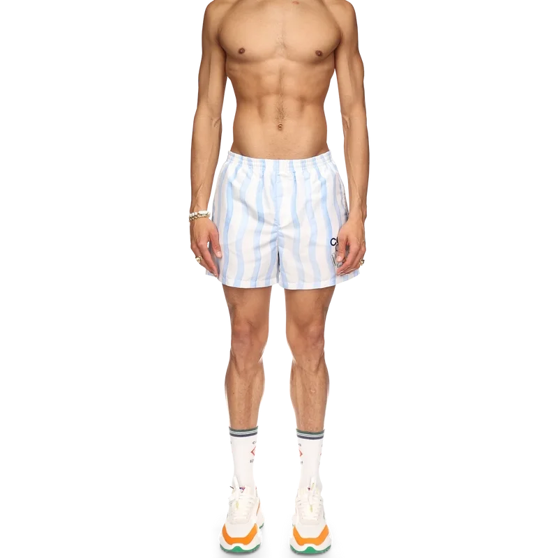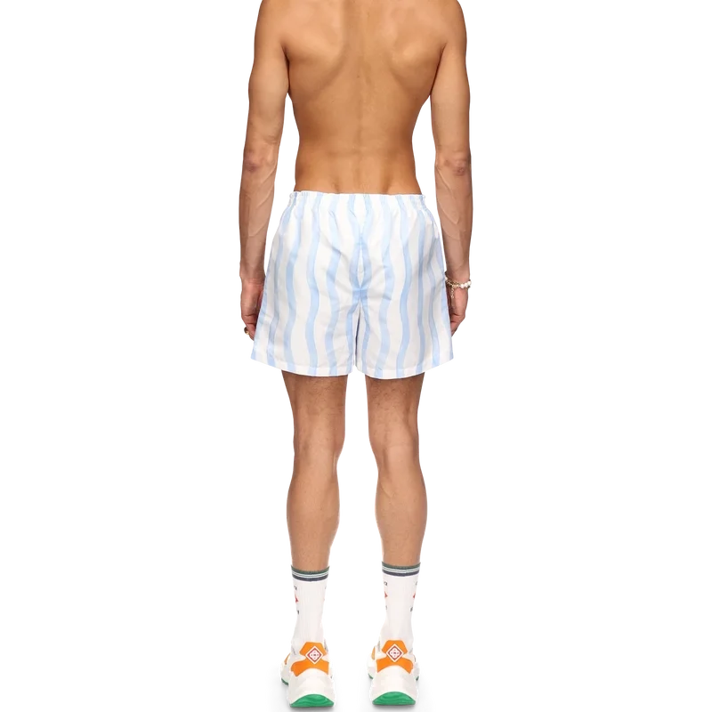 Die Wave-Badehose präsentiert das Memphis-Wave-Design des Hauses und ist aus einem Polyestergewebe gefertigt, mit elastischem Bund, Seitentaschen und Futter. Abgerundet durch ein Casablanca-Markenlabel und das saisonale Artwork des Hauses.