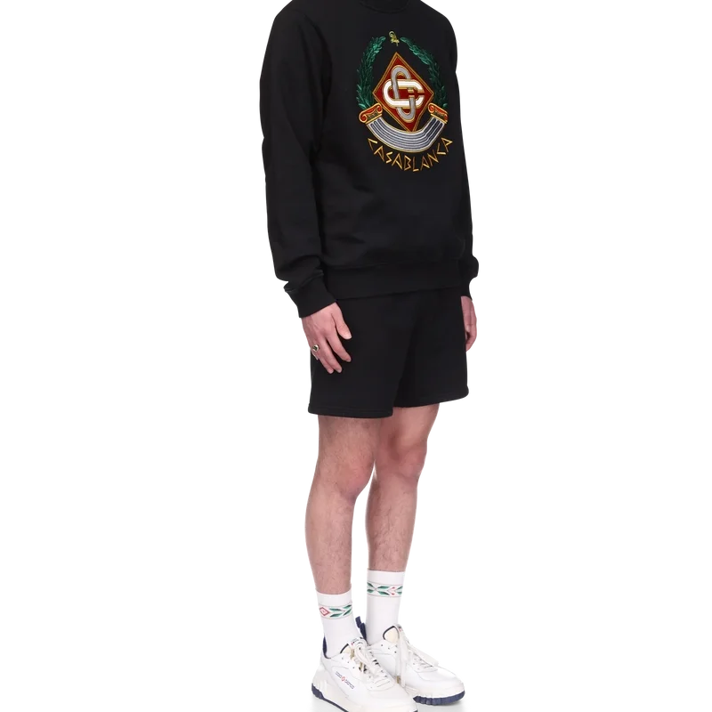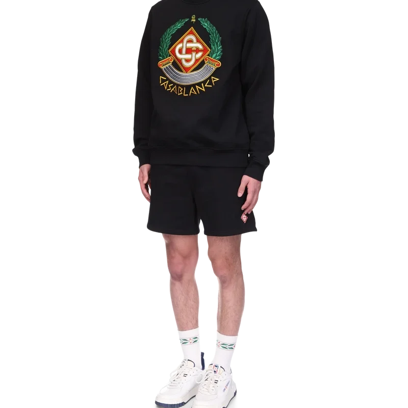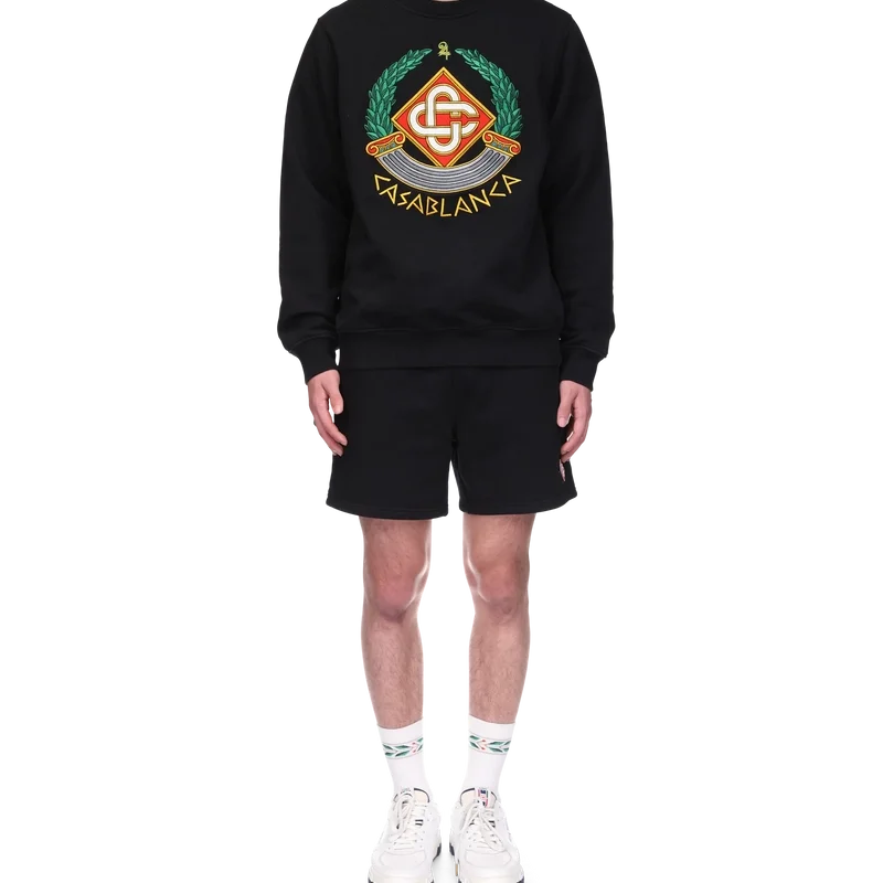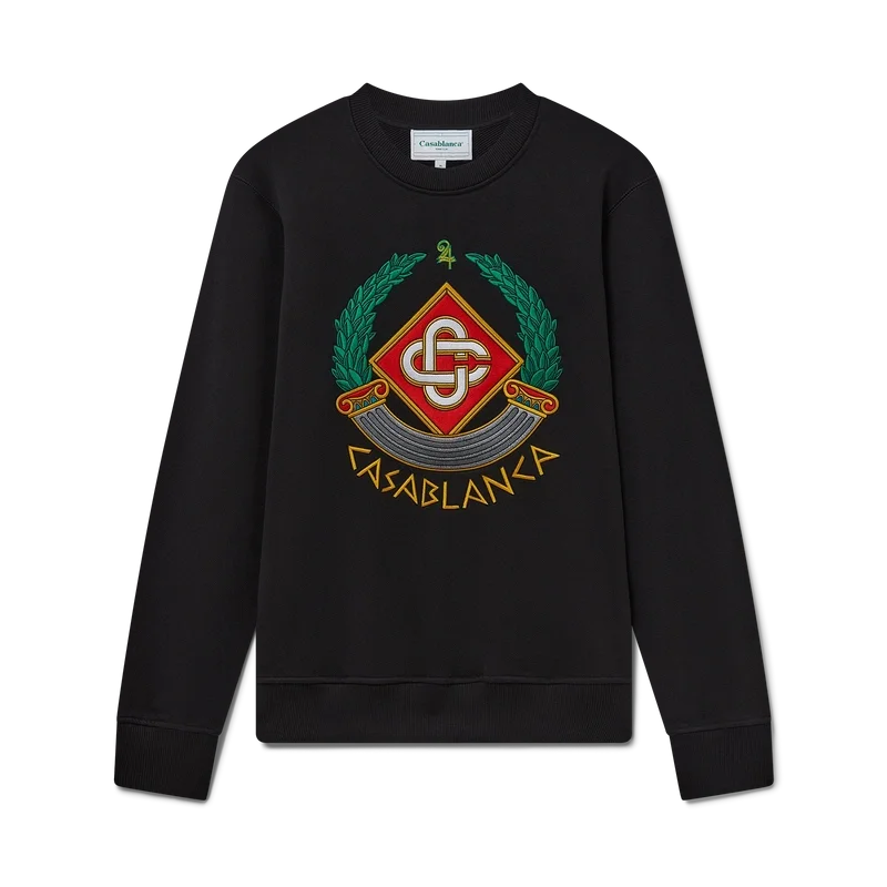Das Casa Crest Sweatshirt ist ein Langarm-Modell aus Bio-Baumwolle, das die für das Haus typische Interpretation der Säule als griechisches Symbol und unsere Version eines verzerrten Logos aufgreift und so ein Bild davon vermittelt, wie ein Casa Crest in der Antike ausgesehen haben könnte. Abgerundet wird das Design durch das charakteristische, ineinander verschlungene Cc-Logo des Hauses, den Schriftzug „Casablanca“ im antiken griechischen Stil, einen klassischen Rundhalsausschnitt sowie gerippte Bündchen und Saum.