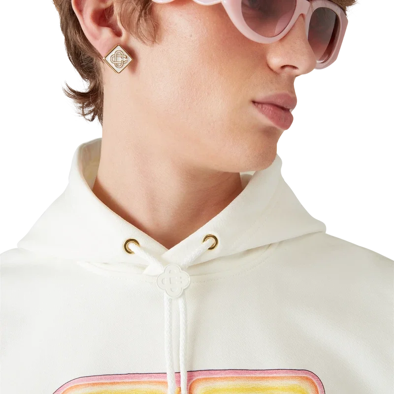 Das Casa Surf Kapuzensweatshirt ist ein bedrucktes Langarm-Modell aus Bio-Baumwollstoff mit saisonalen Motiven, inspiriert von vintage, sonnengebleichten Surfbrettern der 70er Jahre. Mit Kapuze, Kordelzug mit goldenen Enden, Kängurutasche sowie gerippten Bündchen und Saum.