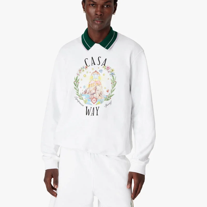 Das Casa Way Sweatshirt mit Rundhalsausschnitt ist ein raffiniertes Langarm-Design mit einem Motiv, das die utopische Vision von Ibiza als Ziel einer fast religiösen Entdeckungsreise durch seine vielfältige Musiklandschaft sowie als Treffpunkt und Ort tiefer Erfahrungen beschreibt. Abgerundet durch einen klassischen Rundhalsausschnitt sowie gerippte Bündchen und Saumdetails.