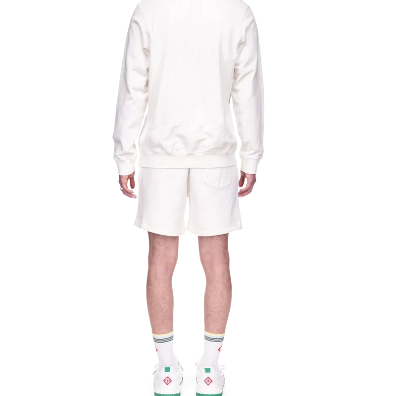 Das Casa Way Off-White Unisex-Sweatshirt verfügt über gestickte Illustrationen von Sportgeräten und floralen Details. Das Modell aus Bio-Baumwolle ist ein klassisches Langarm-Sweatshirt mit Rundhalsausschnitt und wurde für eine lockere Passform entworfen.