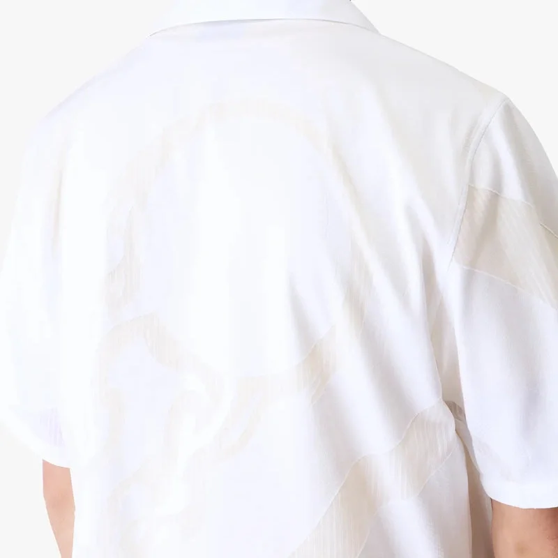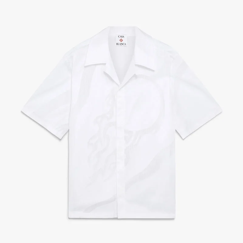 Das „The Art of the Serve“ Fil Coupe Kurzarmhemd ist ein raffiniertes Design aus Hemdenstoff, das eine grafische Interpretation des fliegenden Tennisball-Logos des Hauses zeigt, welches die grundlegende Balance aus Kraft, Geschwindigkeit und Kontrolle symbolisiert. Abgerundet durch einen Kragen, einen Knopfverschluss, Corozo-Knöpfe mit ineinander verschlungenem „Cc“-Logo und eine Brusttasche.
