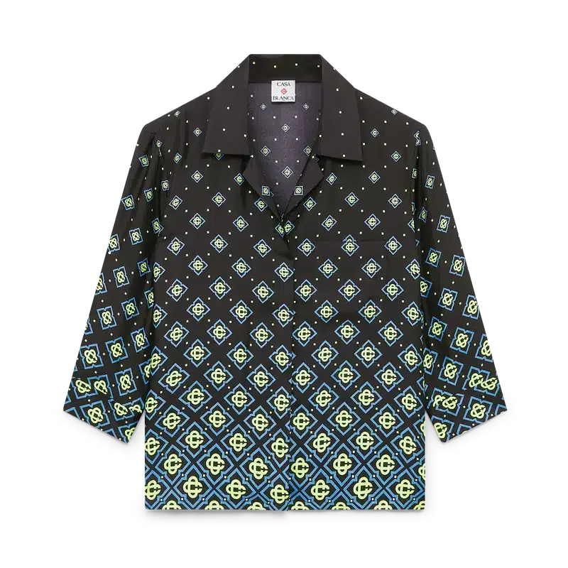 Das Degrade Monogram Langarmhemd ist ein raffiniertes Design mit dem charakteristischen schwarzen Monogramm-Muster des Hauses. Abgerundet wird es durch einen Kragen im kubanischen Stil, einen Knopfverschluss, eine Brusttasche, Corozo-Knöpfe mit ineinander verschlungenem CC-Logo sowie die charakteristischen emaillierten Knöpfe mit Goldrand des Hauses an den Manschetten.