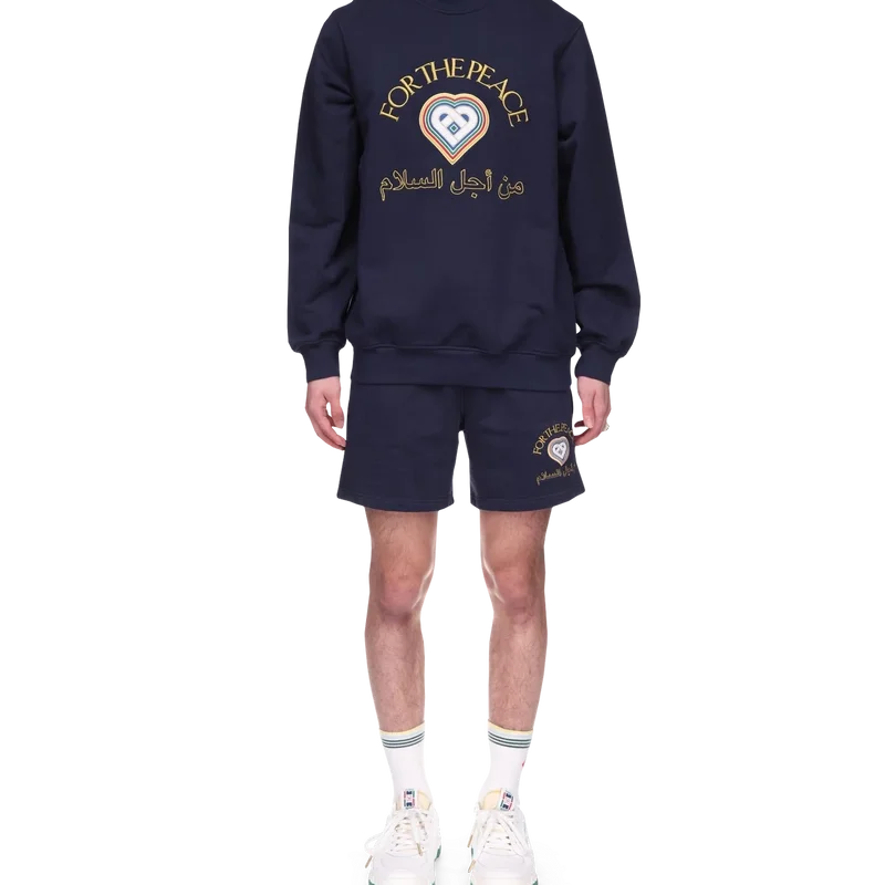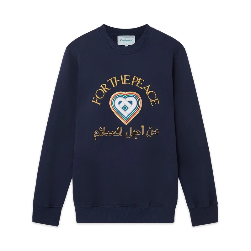 Das „For the Peace“-Sweatshirt in Marineblau zeigt das saisonale Stickmotiv „For the Peace“ – eine Hommage an alle, die gegen Unterdrückung jeglicher Art kämpfen und eine bessere Zukunft für alle gestalten. Mit klassischem Rundhalsausschnitt, langen Ärmeln und einem Casablanca Paris-Markenlabel, entworfen für eine lockere Passform.