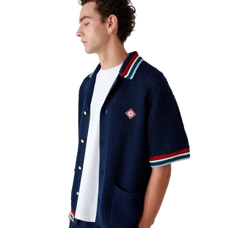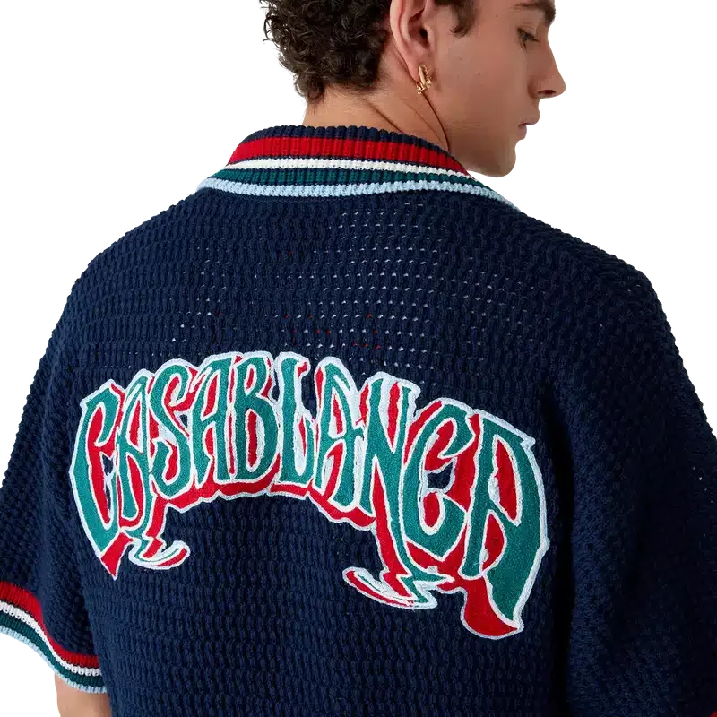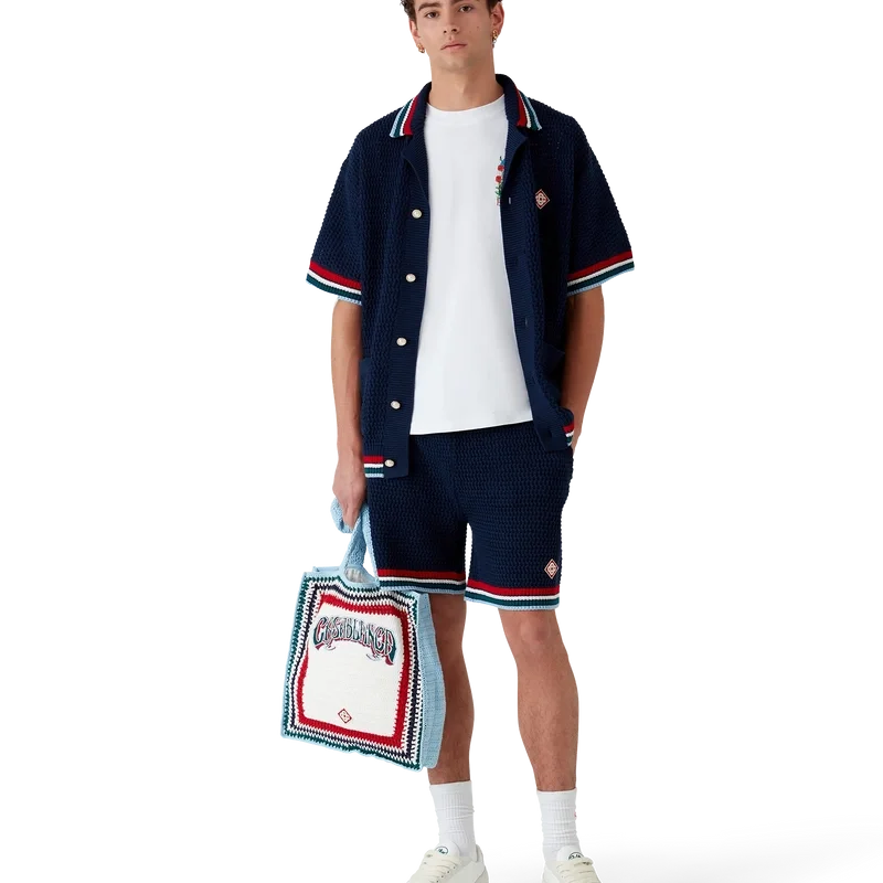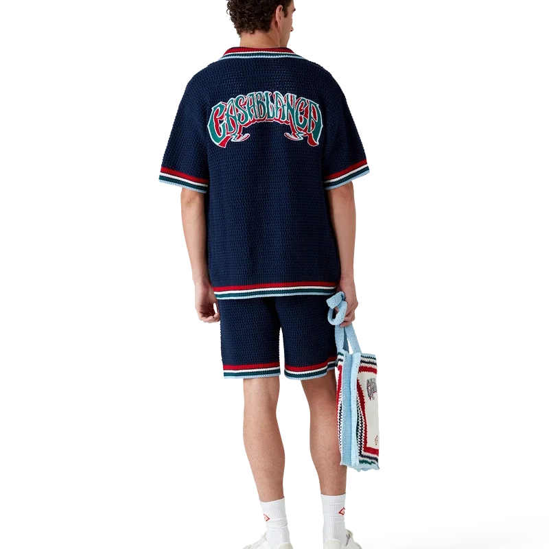 Das Gothic Crochet Hemd ist ein kurzärmeliges Strickmodell aus gehäkelter Baumwolle mit dem charakteristischen Rautenlogo des Hauses. Abgerundet wird es durch die charakteristischen goldgerahmten Perlenknöpfe, aufgesetzte Taschen vorne sowie gestreifte Kanten an Kragen, Ärmelbündchen und Saum.