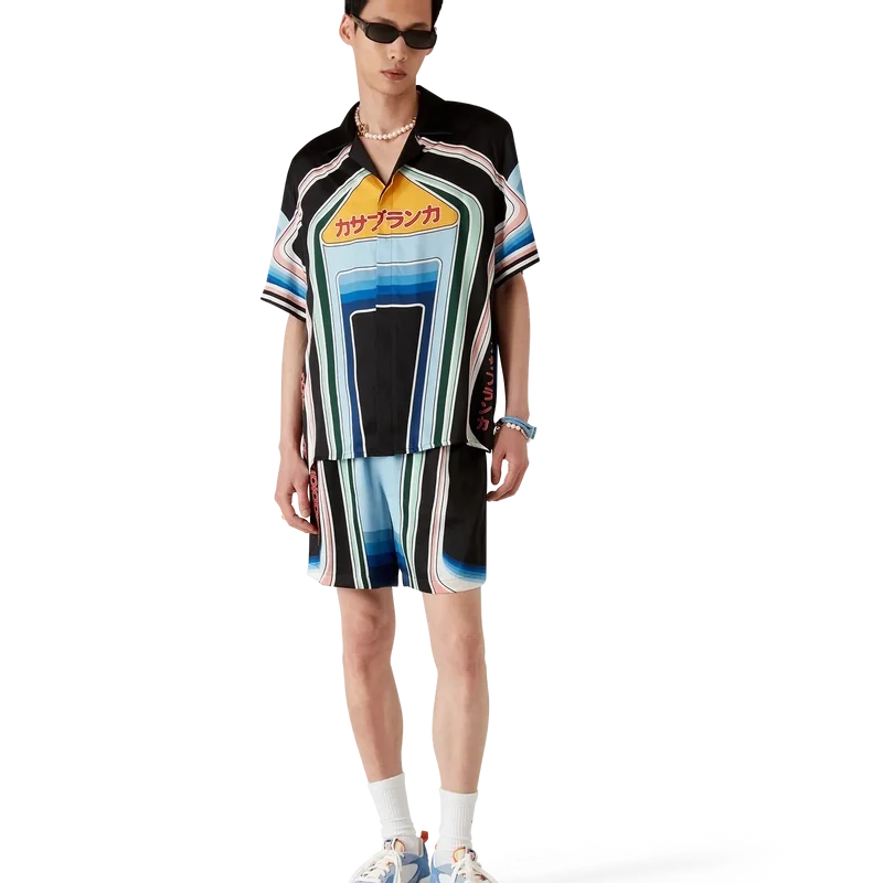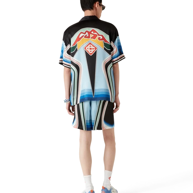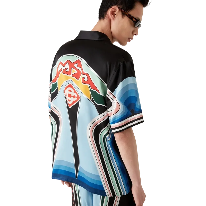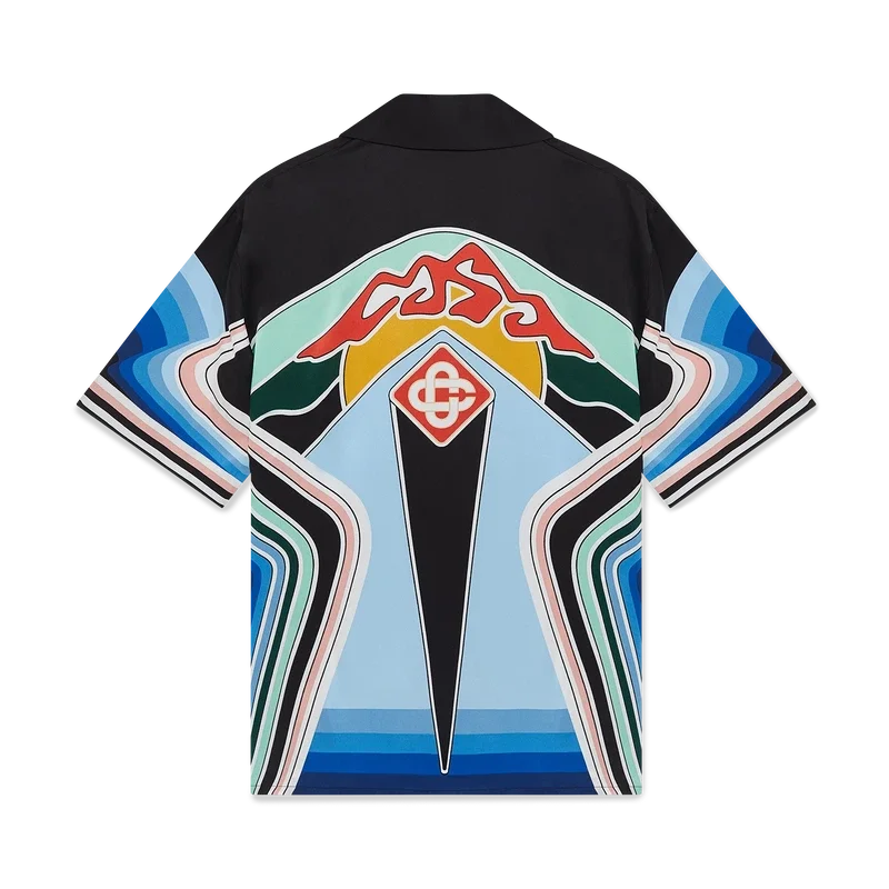 Das Graphic Mountain Seidenhemd mit kurzen Ärmeln ist ein Allover-Print-Design mit dem charakteristischen Kunstwerk des Hauses, das an den von uns erforschten ikonografischen Stil anknüpft – ein digital erstelltes Kunstwerk, das unser Berg-Logo mit unterschiedlichen Linien und Farbverläufen präsentiert und so ein starkes Branding schafft – gefertigt aus Seidensatin. Abgerundet durch einen verdeckten Knopfverschluss, Corozo-Knöpfe mit ineinander verschlungenem Cc-Logo und das charakteristische Diamant-Logo des Hauses.