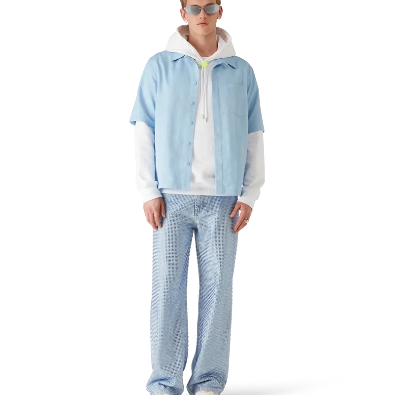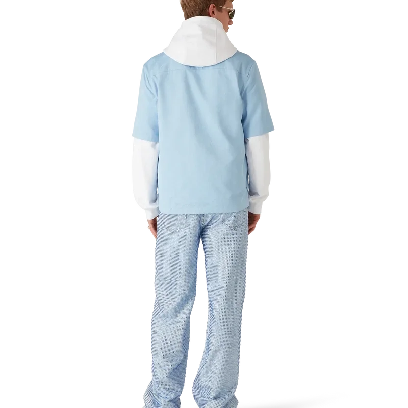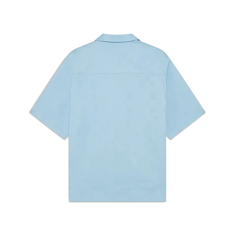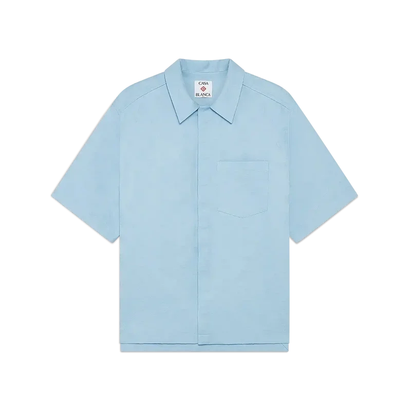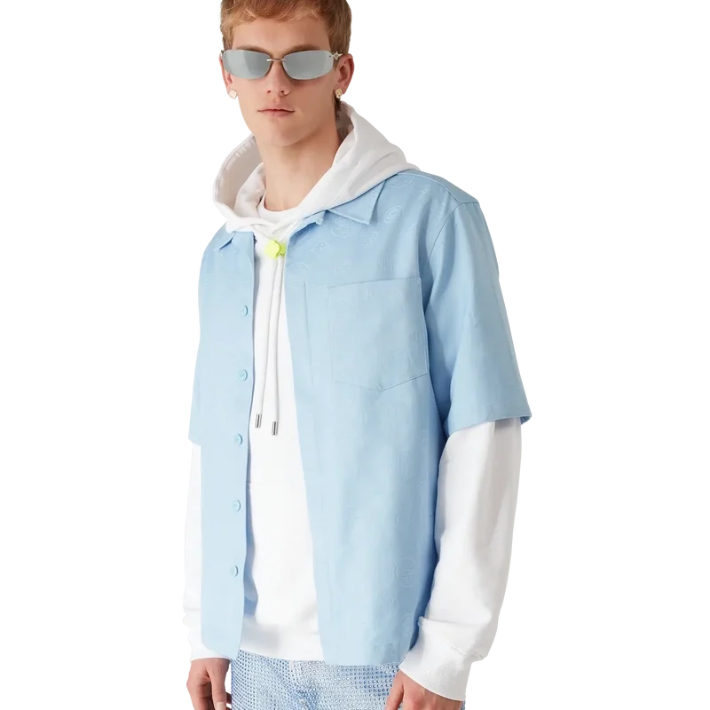 Das hellblaue Monogramm-Kurzarm-Shirt ist ein raffiniertes Design mit dem ikonischen Monogramm-Muster des Hauses. Abgerundet durch einen spitzen Kragen, eine aufgesetzte Brusttasche, einen Knopfverschluss, Corozo-Knöpfe mit ineinander verschlungenem CC-Logo und einen High-Low-Saum.
