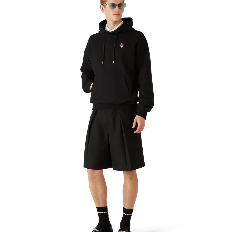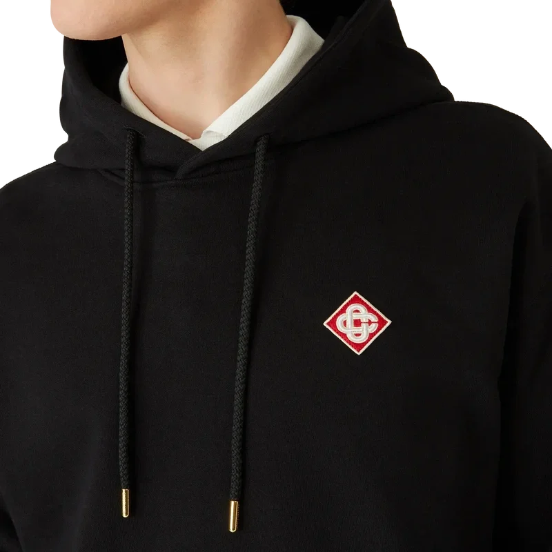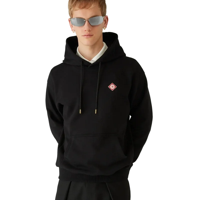 Der Hoodie mit Casa-Logo-Patch besticht durch eine raffinierte Apras-Sport-Silhouette mit dem charakteristischen Diamant-Logo des Hauses. Abgerundet wird das Design durch eine Kängurutasche, gerippte Bündchen und Saum sowie einen Kordelzug mit goldenen Enden – in Schwarz gehalten für zurückhaltende Eleganz.