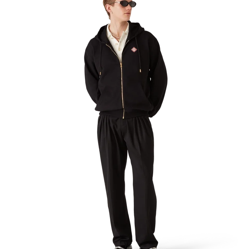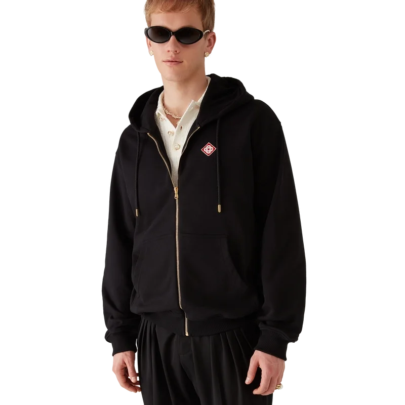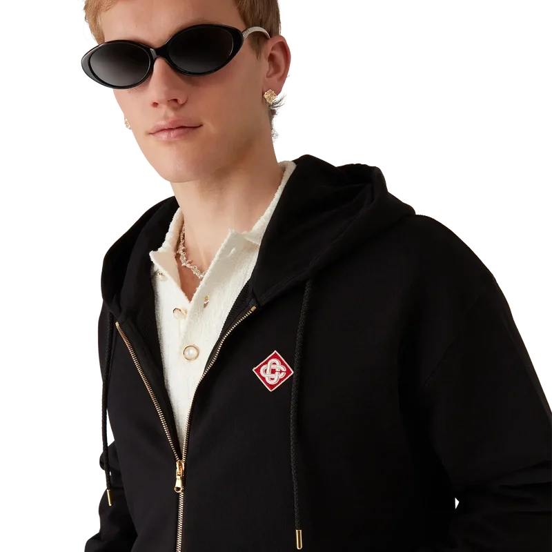 Der klassische Kapuzenpullover mit durchgehendem Reißverschluss ist ein raffiniertes Apras-Sport-Design mit dem ineinander verschlungenen CC-Logo des Hauses. Abgerundet durch einen durchgehenden Reißverschluss, eine Kängurutasche, gerippte Bündchen und Saum sowie einen Kordelzug mit goldenen Enden.