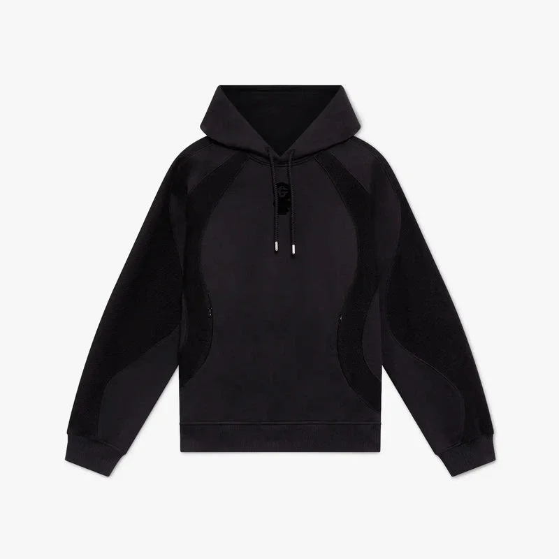 Das Kapuzensweatshirt mit Squash-Logo-Flockdruck ist ein raffiniertes Langarm-Design, das eine Interpretation des klassischen runden Cc-Logos des Hauses zeigt. Die verzerrten, strahlenförmigen Kugeln stellen einen Ball in Bewegung dar und visualisieren den Aufprall, wenn er auf den Boden trifft. Abgerundet wird das Design durch eine Kapuze mit Kordelzug und eine Kängurutasche.