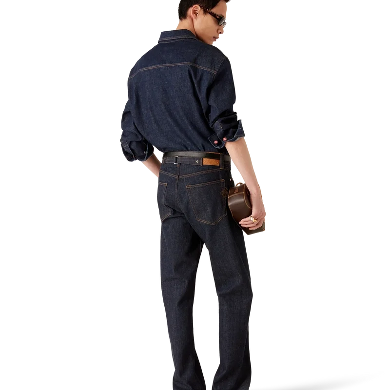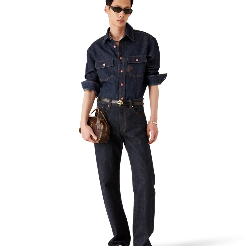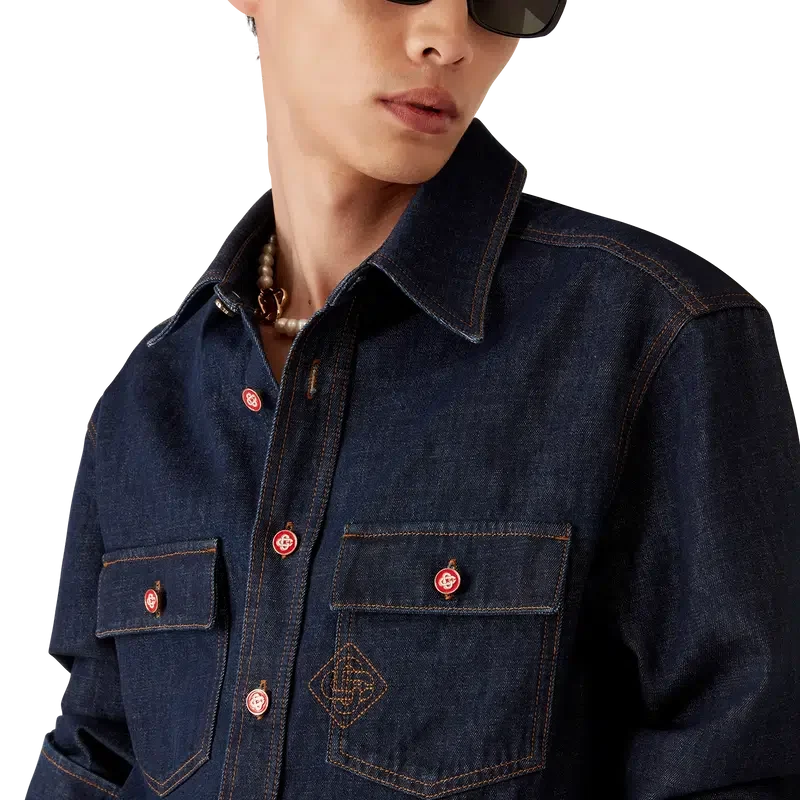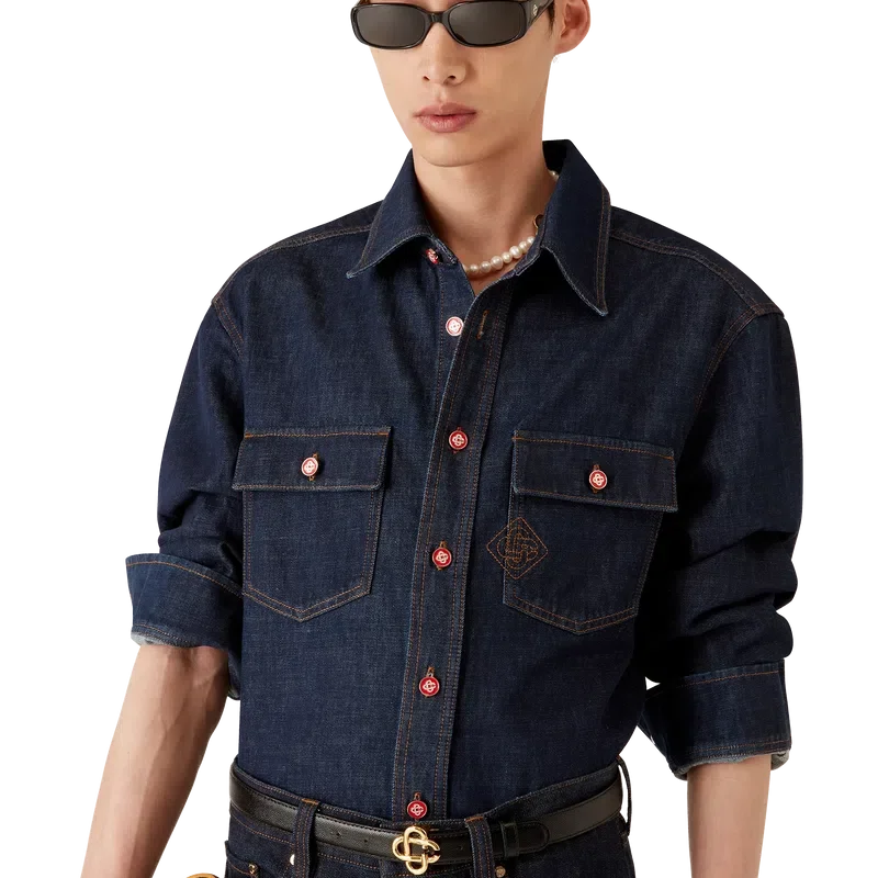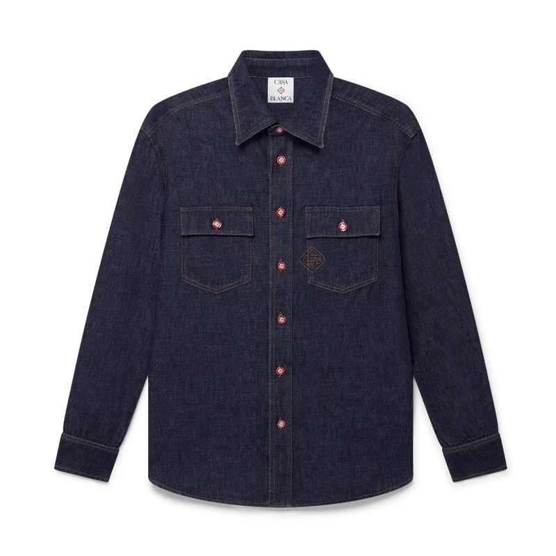 Das Monogram Langarm-Denimhemd ist ein Langarmmodell aus Baumwoll-Denimstoff. Mit Brusttaschen, einem spitzen Kragen, Knopfverschluss, vergoldeten Markenbeschlägen, einer Kellerfalte am Rücken und einem gestickten CC-Logo.
