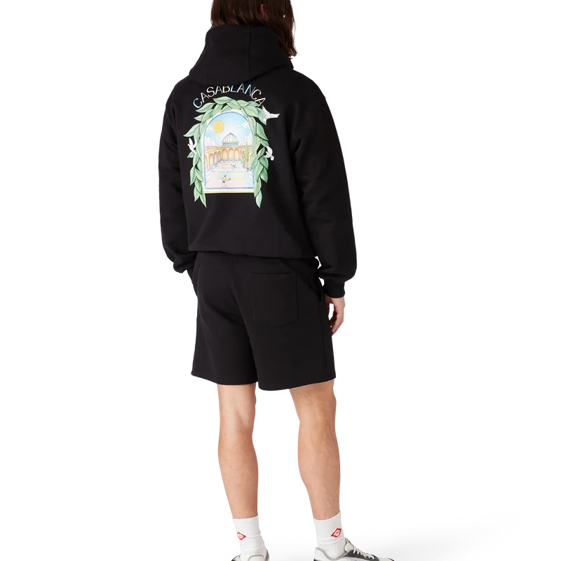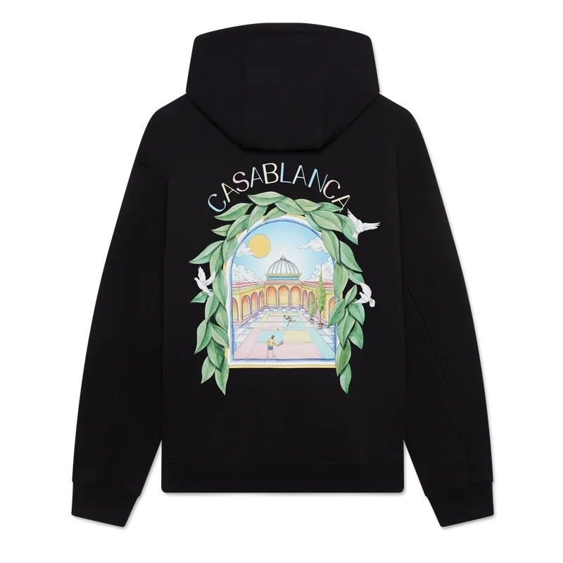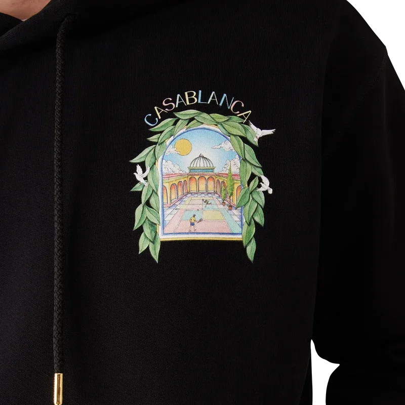 Das Casa L’arche Kapuzensweatshirt ist ein raffiniertes, bedrucktes Langarm-Design mit dem saisonalen Kunstwerk des Hauses und Designelementen wie dem Bogen, der Natur, der Architektur und Tennis auf Vorder- und Rückseite. Abgerundet wird es durch eine Kapuze, einen Kordelzug mit goldenen Enden sowie gerippte Bündchen und Saum.