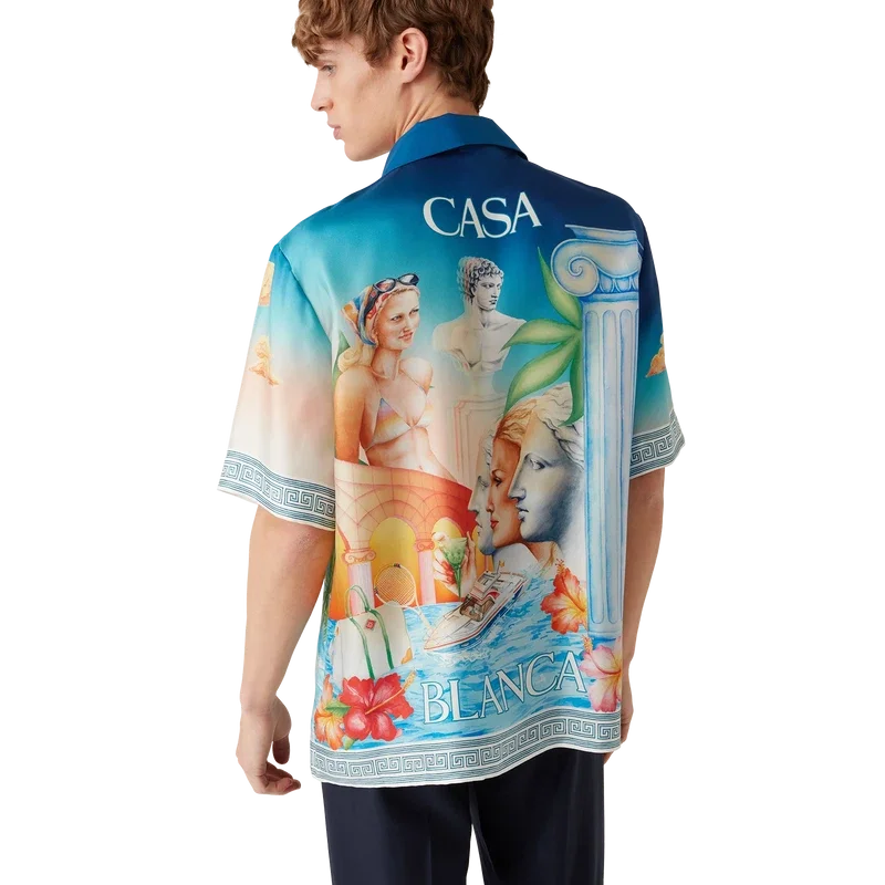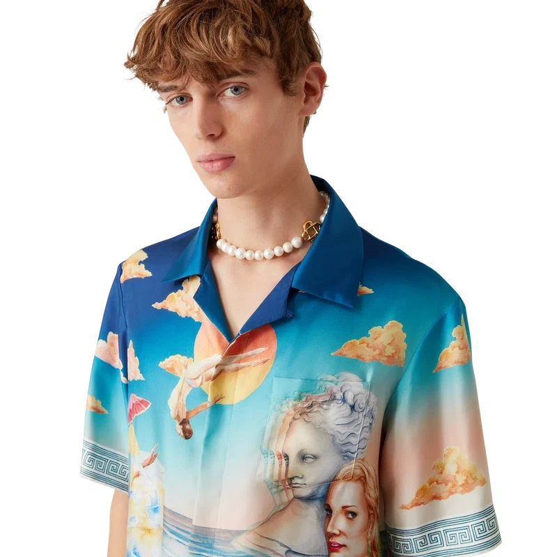 Das Le Plongeon Seidenhemd ist ein kurzärmeliges Modell mit Allover-Print aus Seidentwill, das mit dem saisonalen Print des Hauses versehen ist. Dieser ist von der fortwährenden Auseinandersetzung mit der klassischen Schönheit und dem zeitgenössischen Charme des antiken Griechenlands inspiriert und integriert die Designelemente des Hauses. Abgerundet durch die charakteristischen Corozo-Knöpfe mit dem ineinander verschlungenen CC-Logo, einen Knopfverschluss, einen kubanischen Kragen und eine Brusttasche.