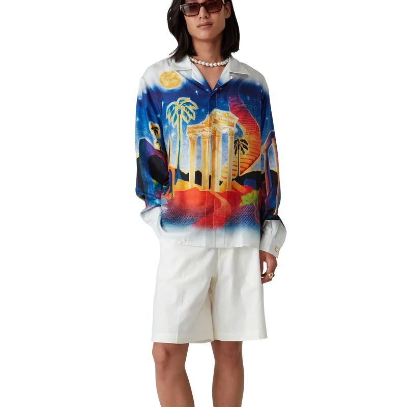 Midnight Acropolis Langarm-Seidenhemd