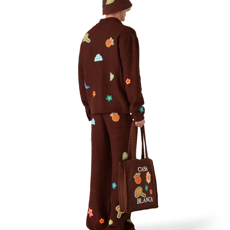 Das Motif Crochet Hemd ist ein langärmeliges Modell aus merzerisiertem Baumwollstoff mit Häkelmotiven. Es ist mit Motiven der klassischen Designelemente des Hauses, den charakteristischen goldenen Perlenknöpfen sowie einem gerippten Kragen und gerippten Bündchen versehen.