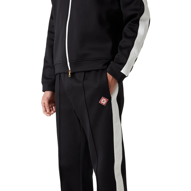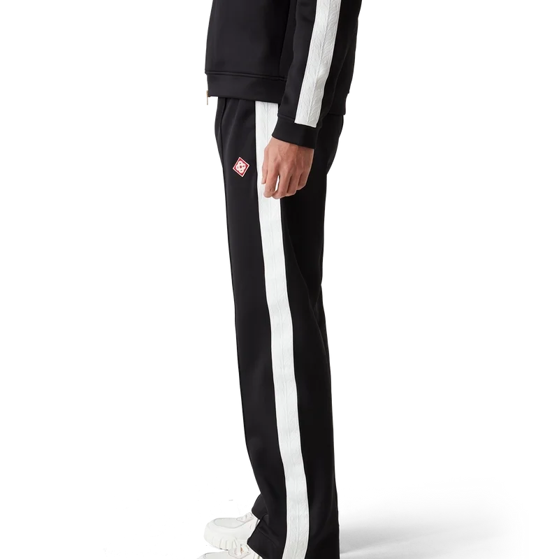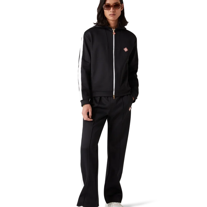 Die Scuba-Jogginghose ist ein Sportbekleidungsmodell aus Scuba-Jersey mit Streifenverzierung an den Seiten. Sie verfügt über einen elastischen Bund mit Kordelzug, das charakteristische Casa-Logo des Hauses, Biesen an der Vorderseite, Seitentaschen in den Beinen und eine aufgesetzte Gesäßtasche.