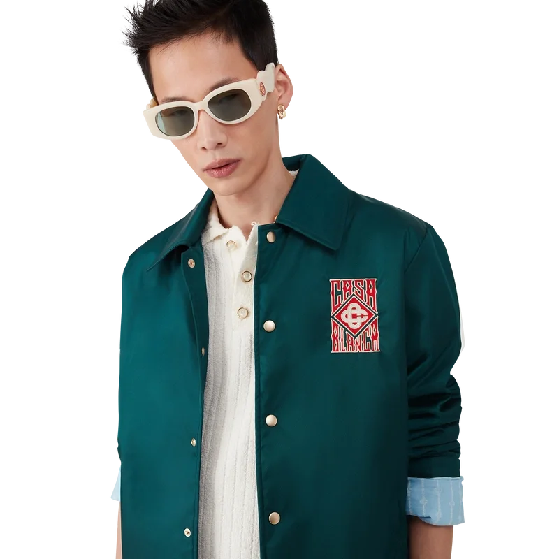 Die Gothic Logo Stadium Jacke ist ein langärmeliges, leichtes Modell aus Funktionsstoff mit dem Gothic-Logo des Hauses. Abgerundet durch einen vergoldeten Druckknopfverschluss, einen spitzen Kragen, ein Futter und schräge Leistentaschen vorne.