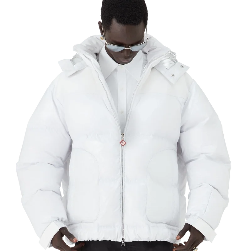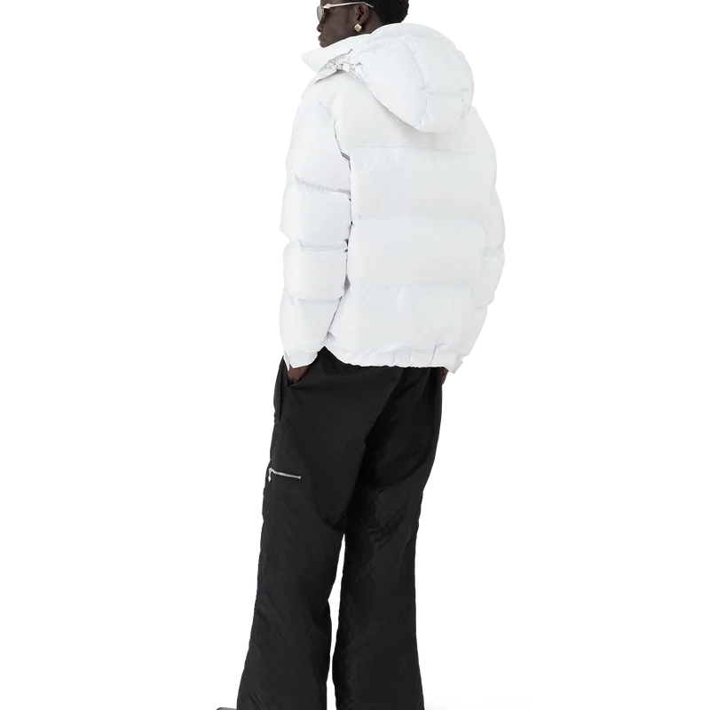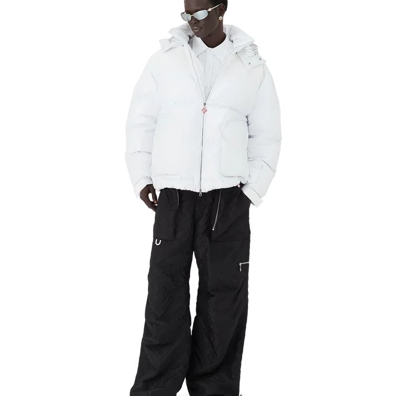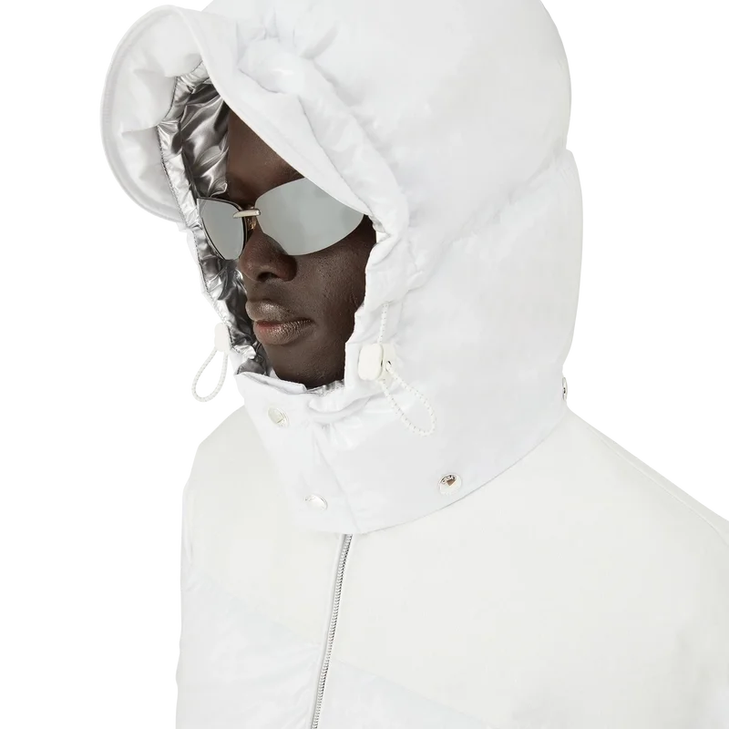 Die Ski-Pufferjacke ist ein raffiniertes Design der Oberbekleidung aus Ripstop-Nylon mit Daunenfüllung und kontrastierendem Monogramm-Jacquard-Einsatz über den Schultern. Inspiriert von der unberührten Schönheit der ländlichen Schneelandschaft Japans, wo hoch aufragende Gipfel und frischer Pulverschnee das Ackerland in endlose weiße Horizonte verwandeln. Abgerundet wird das Design durch eine Kapuze mit Cc-Logo-Kordelstoppern und Kordelzugverschluss, einen Stehkragen, der zusätzliche Wärme und Schutz vor den Elementen bietet, einen Reißverschluss mit dem charakteristischen Diamant-Logo-Reißverschlussanhänger des Hauses, Fronttaschen mit Reißverschluss, verstellbare Manschettenbänder mit Markenlogo sowie einen elastischen Saum und elastische Manschetten.