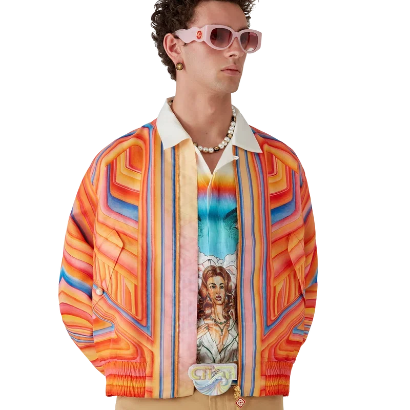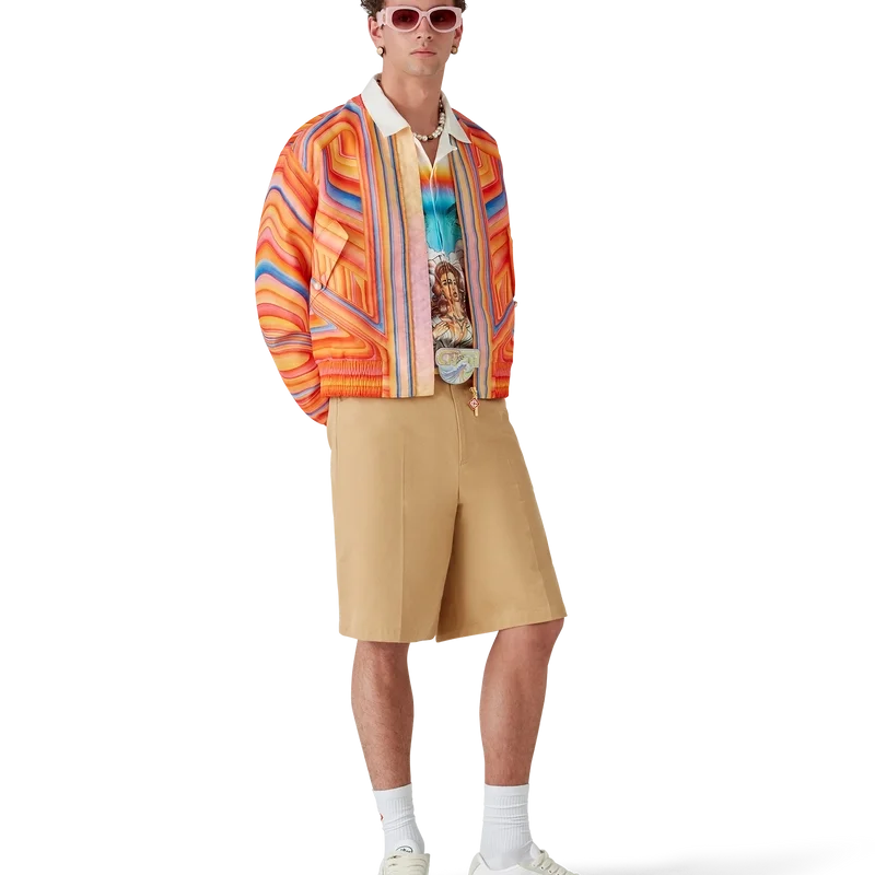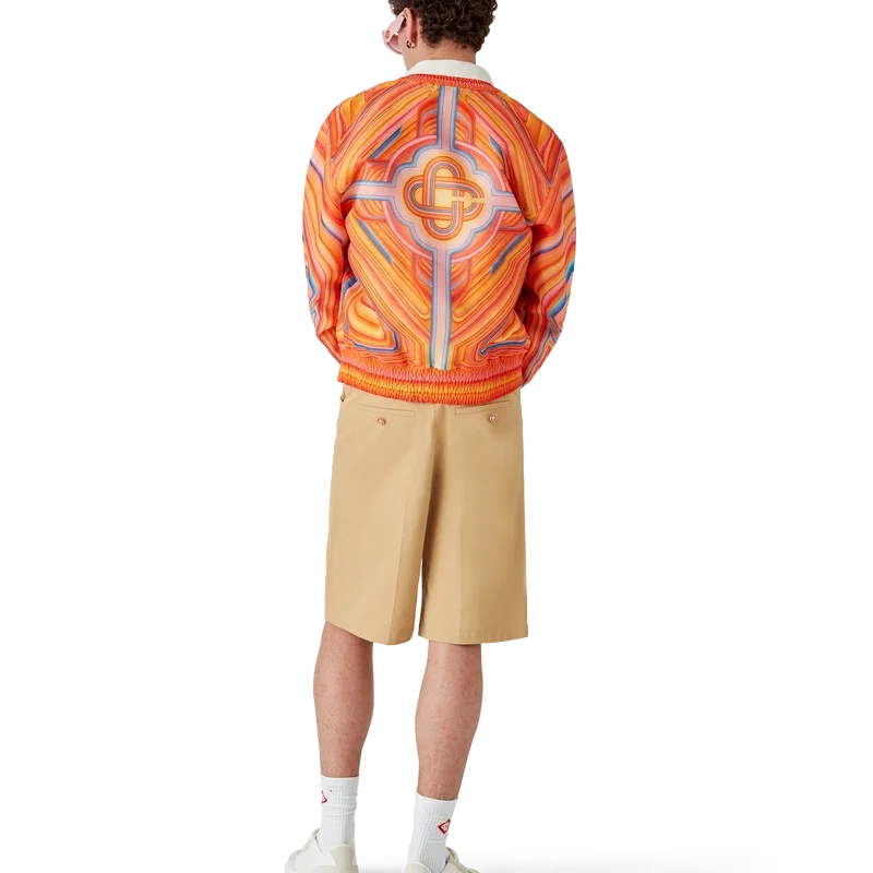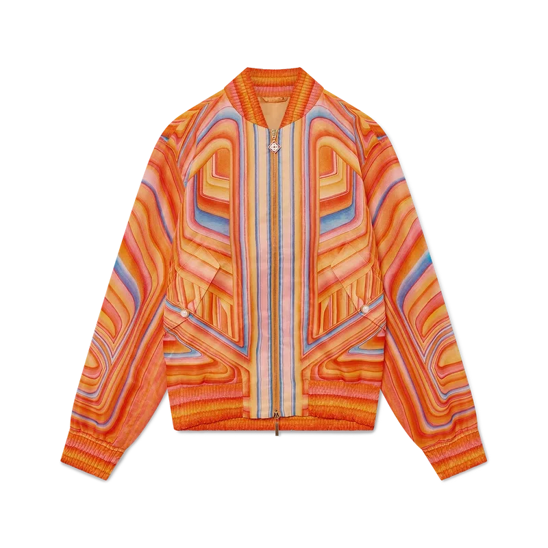 Die Low Rider Organza Bomberjacke ist ein bedrucktes Modell mit klassischer Silhouette aus einem technischen Stoff, verziert mit dem aktuellen Low Rider-Motiv der Saison. Mit Reißverschluss, dessen Zipperlasche das charakteristische Rautenlogo des Hauses ziert, Pattentaschen vorne mit dem charakteristischen goldenen Perlenknopfverschluss sowie geripptem Stehkragen, Bündchen und Saum.
