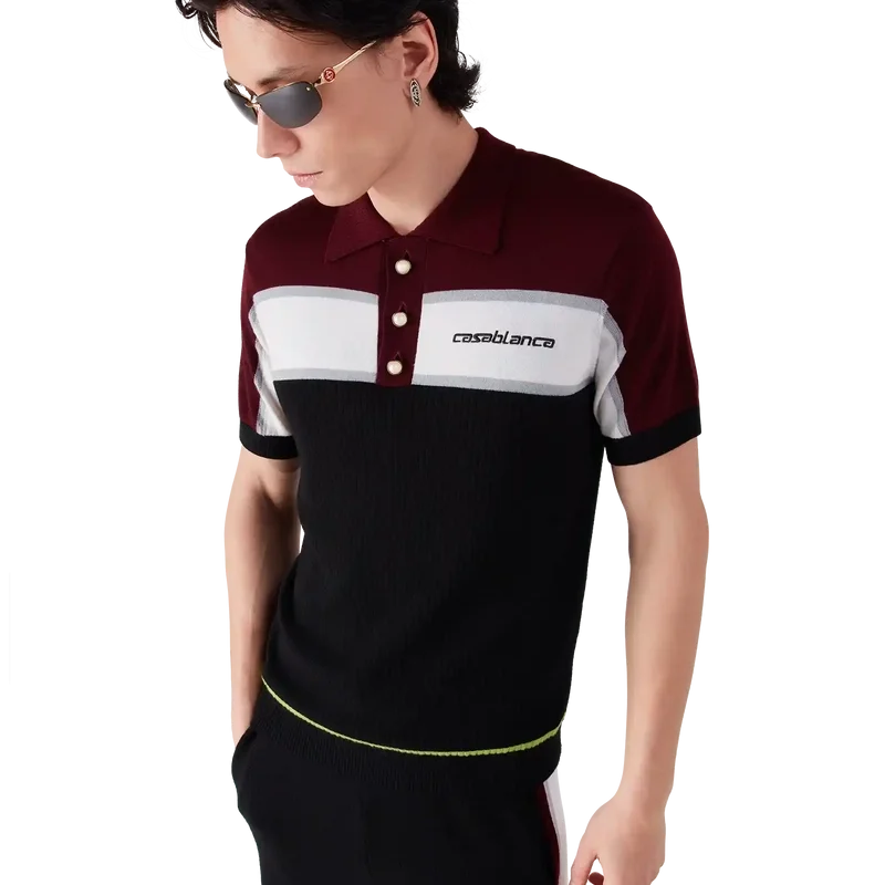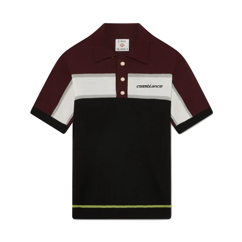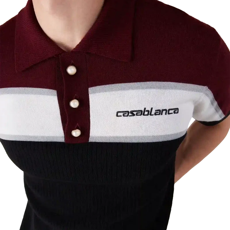 Das gestreifte Merino-Poloshirt ist ein raffiniertes Kurzarm-Design mit klassischer Strickkonstruktion. Abgerundet durch einen gerippten Kragen, eine Knopfleiste und die charakteristischen goldumrandeten Perlmuttknöpfe verkörpert die Silhouette mit ihrer schmalen Passform zurückhaltende Eleganz.