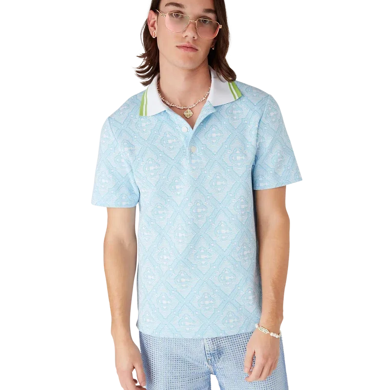 Hellblaues Jacquard-Poloshirt mit kurzen Ärmeln