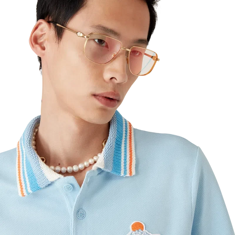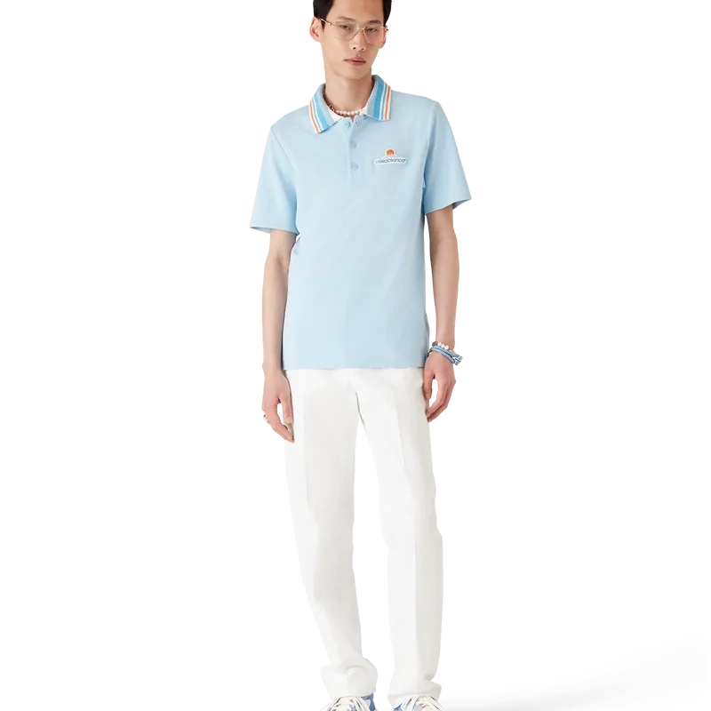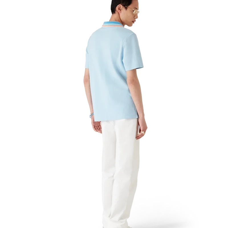Das kurzärmelige Polohemd aus Strick-Piqué ist ein klassisches Design mit dem Casa Montagne Text-Logo – einem Logo, das auf den ersten Blick wie ein Berg aussieht, bei genauerem Hinsehen jedoch „Casa“ zu lesen ist – gefertigt aus Bio-Baumwoll-Piqué. Abgerundet durch einen Knopfverschluss, Corozo-Knöpfe mit ineinander verschlungenem Cc-Logo und einen orange-blau-weiß gestreiften Strickkragen.