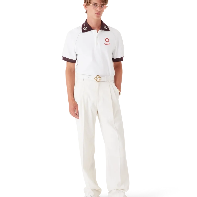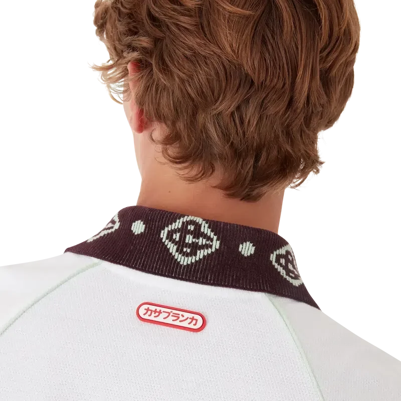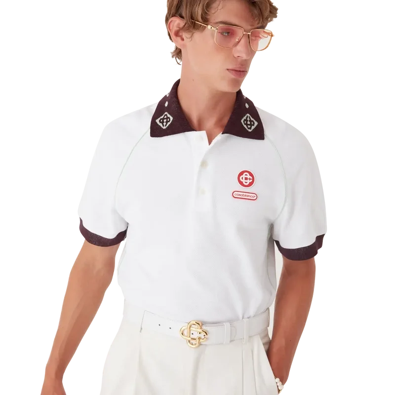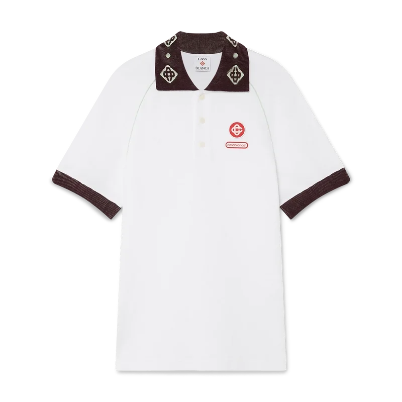 Das Piqué-Poloshirt ist ein klassisches Modell mit dem CC-Logo des Hauses und einem Casablanca-Logo-Aufnäher aus Bio-Baumwoll-Piqué. Abgerundet wird das Design durch einen kontrastierenden Strickkragen mit unserem charakteristischen ineinander verschlungenen CC-Logo, kontrastierende Manschetten, eine Knopfleiste mit drei Knöpfen, Raglanärmel, Corozo-Knöpfe mit ineinander verschlungenem CC-Logo sowie ein Casablanca-Logo unterhalb des Kragens in japanischer Schrift.
