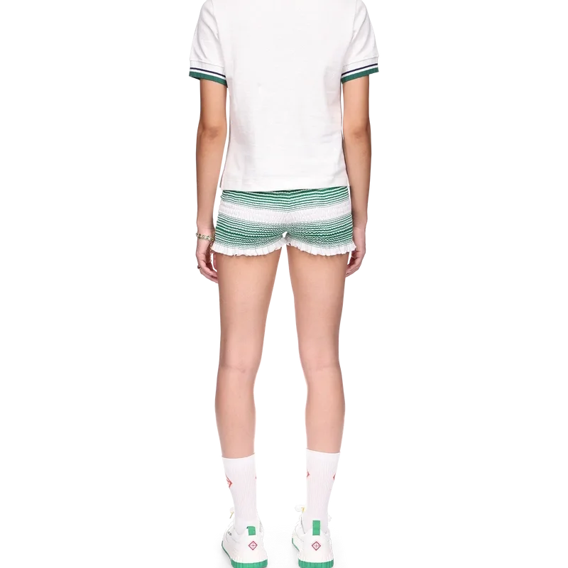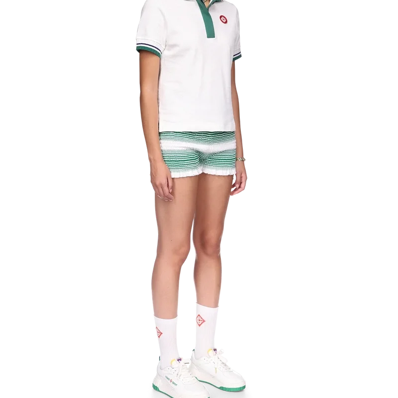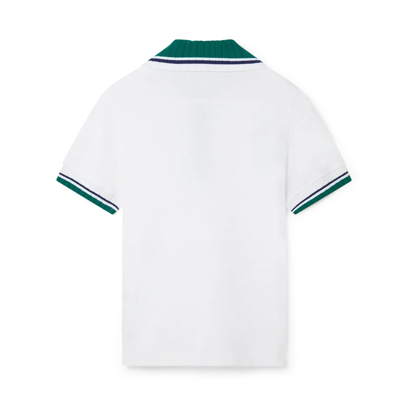 Das Piqué-Poloshirt ist ein kurzärmeliges Modell in klassischer Silhouette mit dem charakteristischen Diamant-Logo-Aufnäher des Hauses. Hergestellt aus einem Piqué-Stoff aus Bio-Baumwolle, mit kontrastierenden Details an Kragen und Manschetten, einer Knopfleiste mit drei Knöpfen und einem Casablanca-Markenlabel