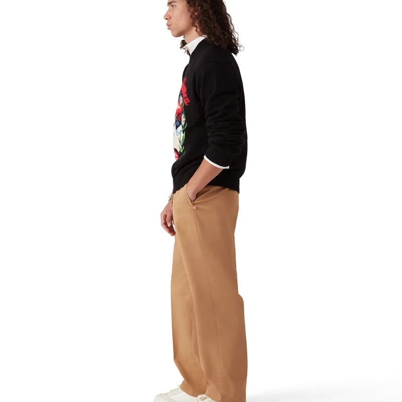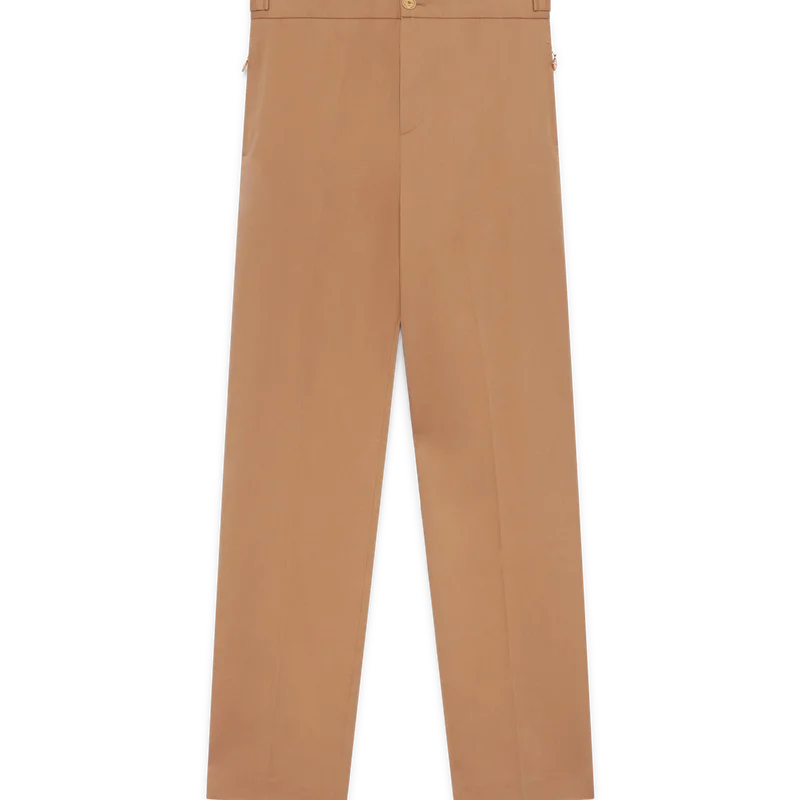 Die Chino-Hose ist ein Modell mit geradem Bein aus Bio-Baumwollstoff. Mit Baumwollfutter, Eingrifftaschen mit Reißverschluss und den für das Haus typischen Reißverschlusslaschen mit Diamant-Logo, Reißverschluss, seitlichen Weitenreglern und aufgesetzten Gesäßtaschen.
