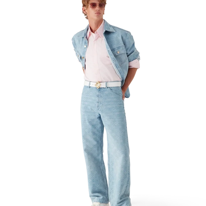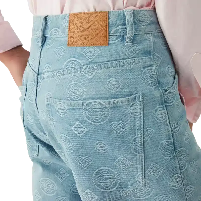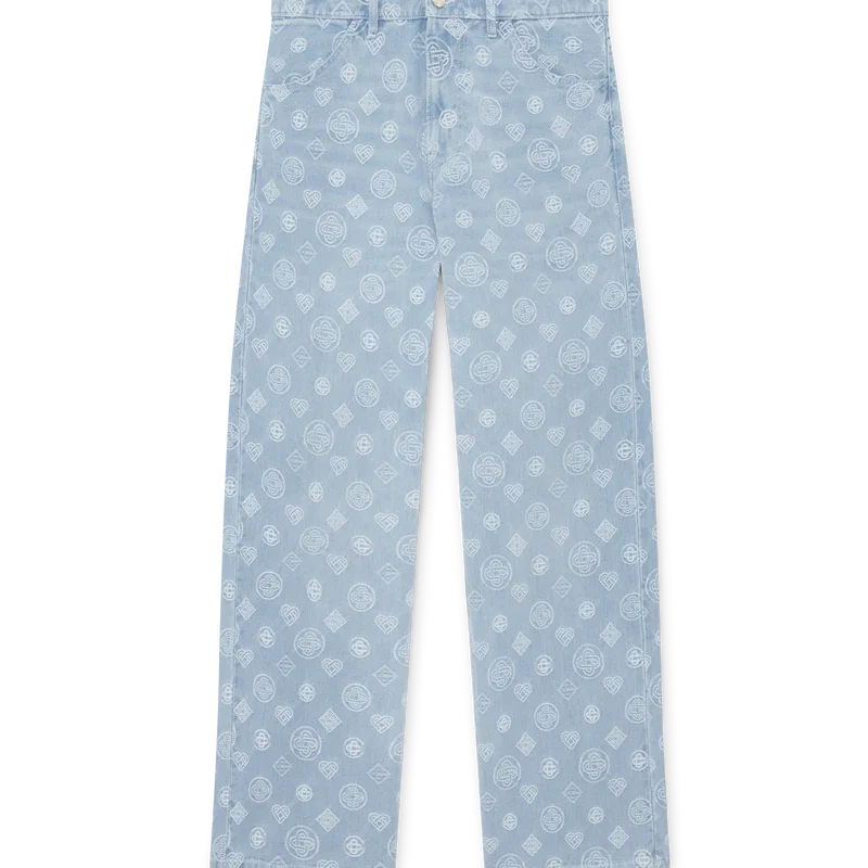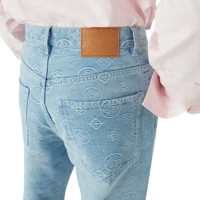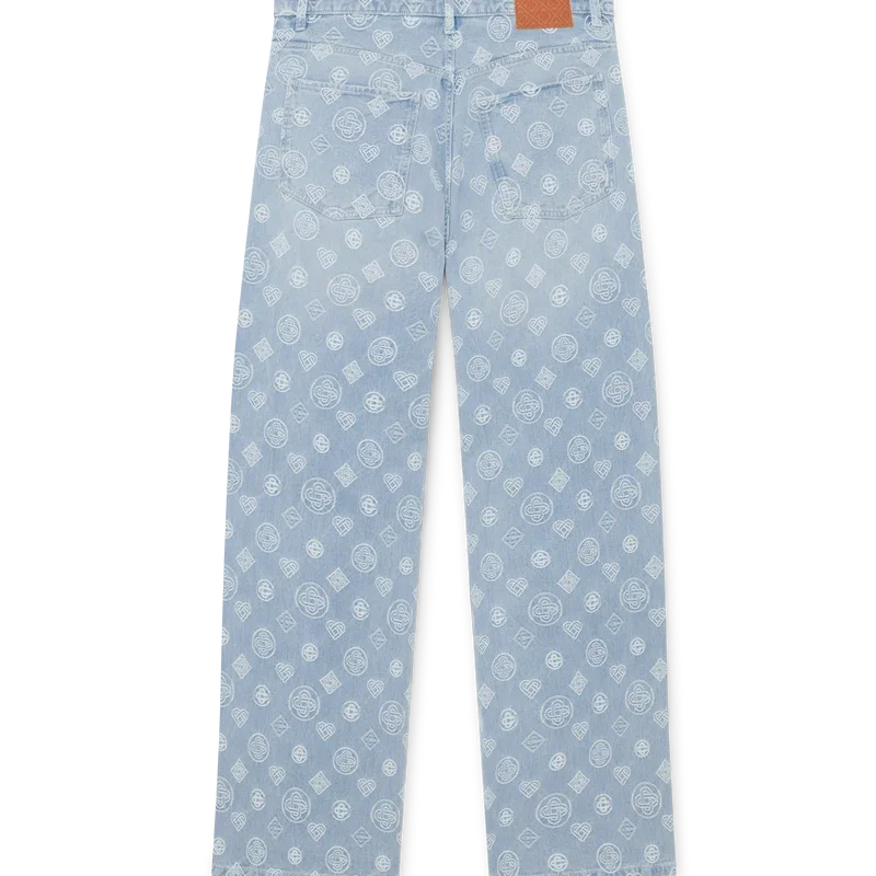 Die Denim Monogram Relaxed Fit Jeans ist ein klassisches Modell mit geradem Bein und dem wiederholten Honeydew-Logo des Hauses. Dieses Muster unterscheidet sich von unseren anderen Monogrammen, da es einzigartige Formen zu einem einheitlichen Muster kombiniert. Abgerundet durch Gürtelschlaufen, Reißverschluss, schräge Taschen, aufgesetzte Gesäßtaschen und vergoldete Beschläge.