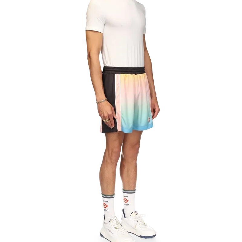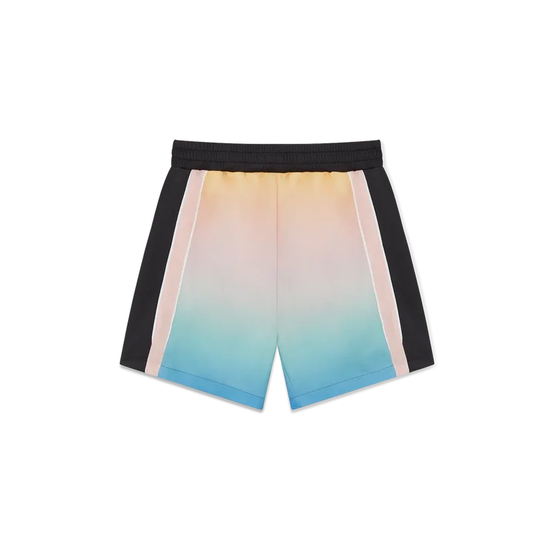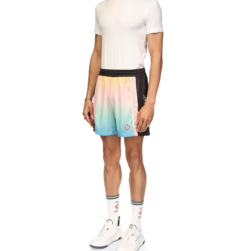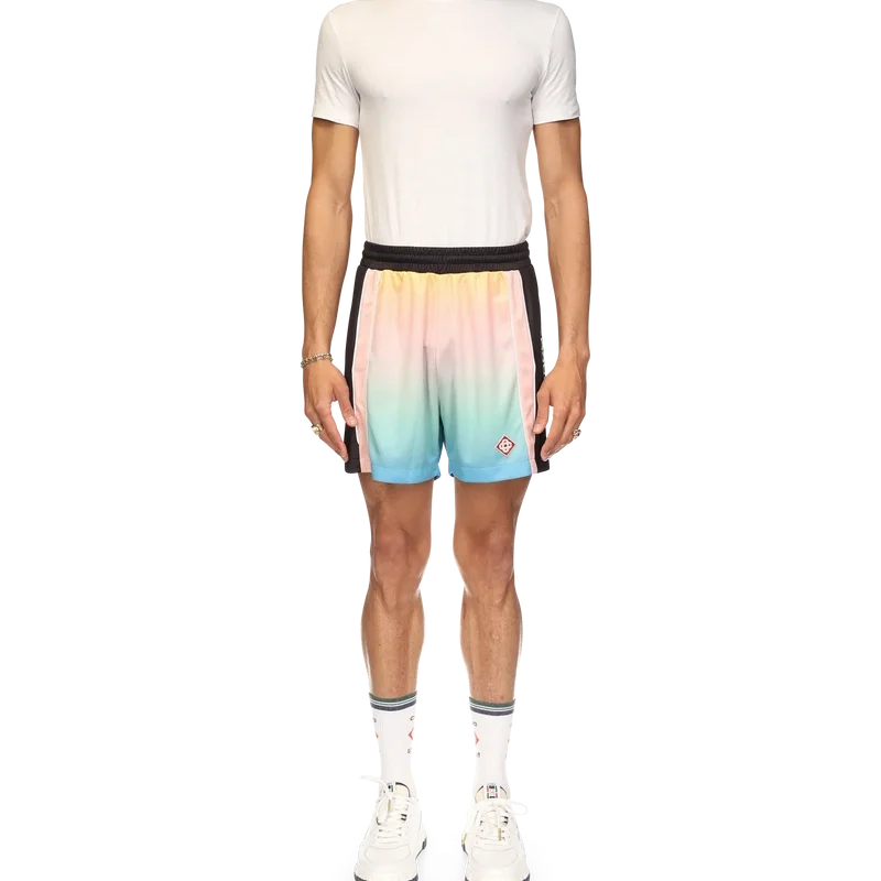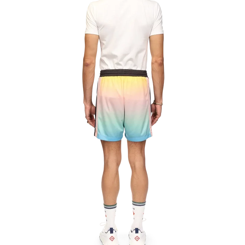 Die Fußballshorts mit Pastell-Farbverlauf sind ein Sportbekleidungsdesign mit einem Farbverlauf aus Pastelltönen, der die für unsere Marke zentralen ätherischen Themen unterstreicht. Hergestellt aus Birdseye-Mesh mit dem charakteristischen Diamant-Logo-Patch des Hauses und einem Casablanca-Logo-Streifen an der Seite. Abgerundet durch einen elastischen Bund mit Kordelzug und seitlichen Eingrifftaschen.
