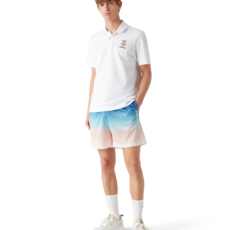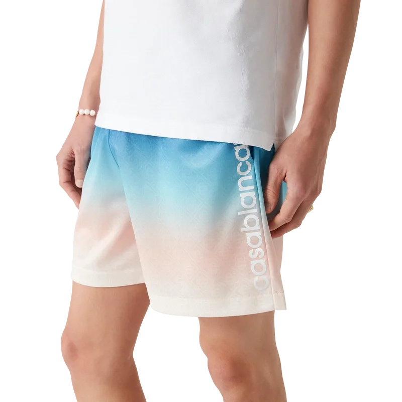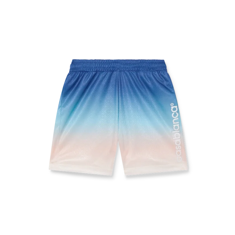 Die Gradient Football Shorts sind ein Sportbekleidungsdesign mit einem Farbverlauf, der die Kernmotive unserer Marke unterstreicht. Sie sind aus einem Jacquard-Monogramm-Polyestergewebe gefertigt und tragen das charakteristische Casablanca-Logo des Hauses an der Seite. Abgerundet werden sie durch einen elastischen Bund mit Kordelzug und seitlichen Eingrifftaschen.
