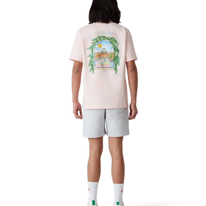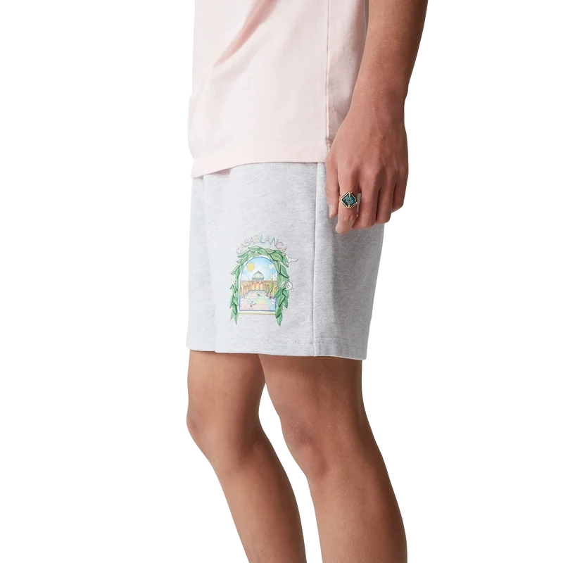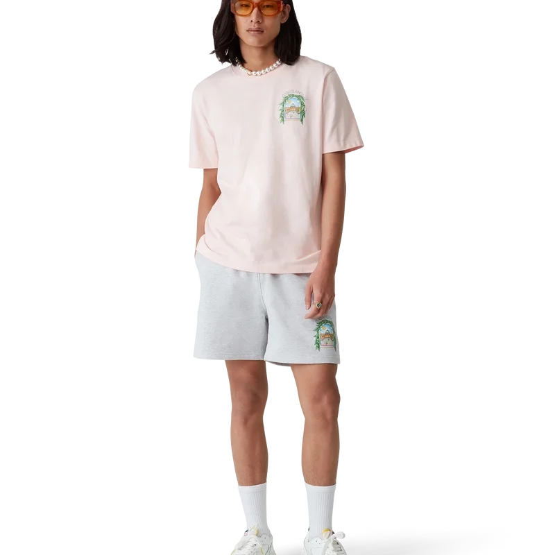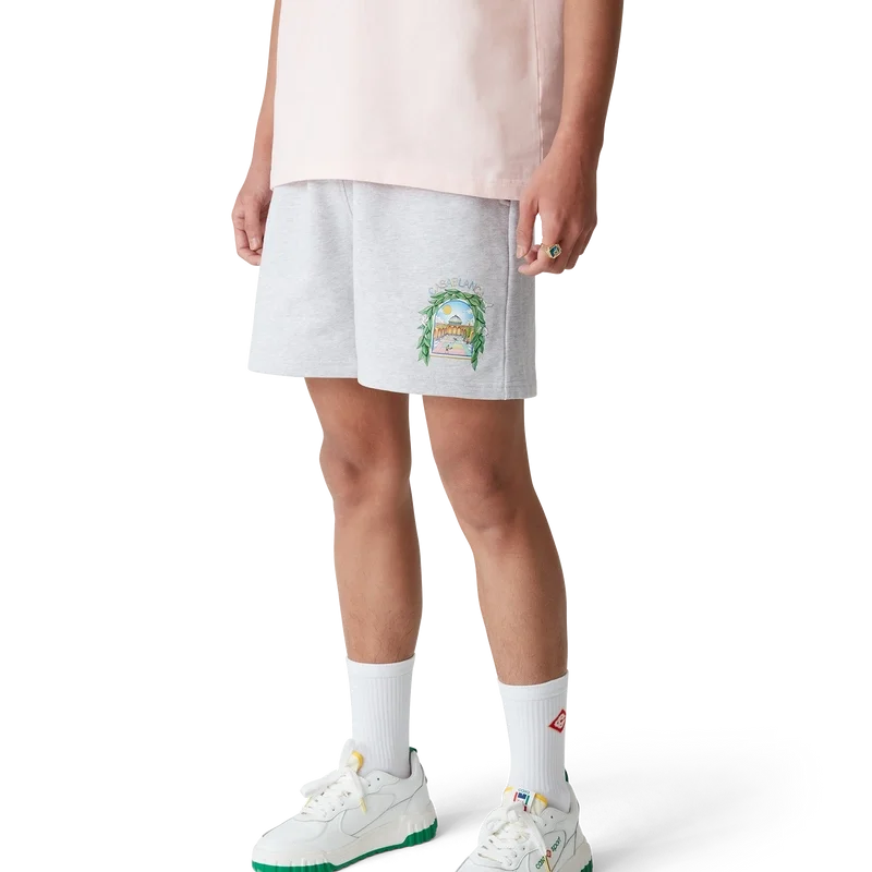 Die L’arche De Tennis Sweatshorts sind ein bedrucktes Modell aus Bio-Baumwollstoff. Mit elastischem Bund, Kordelzug mit goldenen Enden, Seitentaschen in den Nähten und einer aufgesetzten Gesäßtasche.