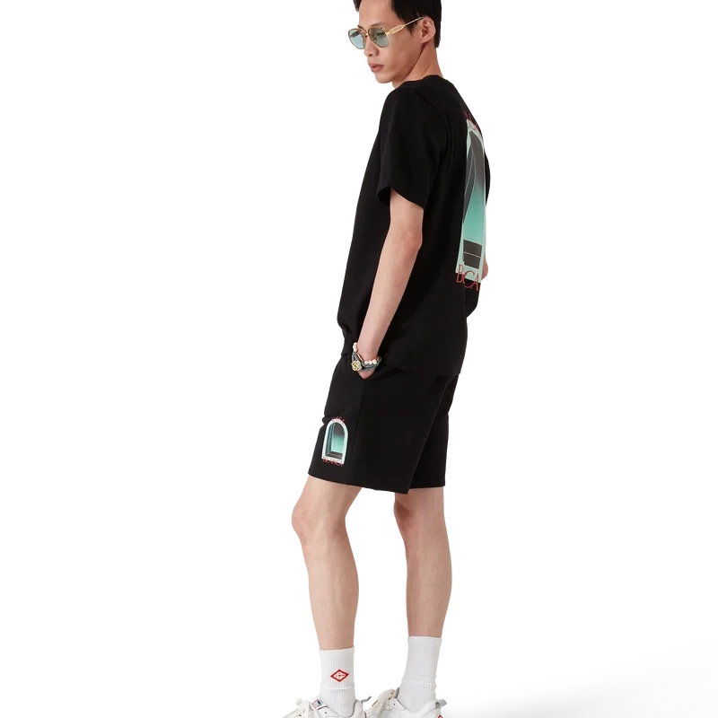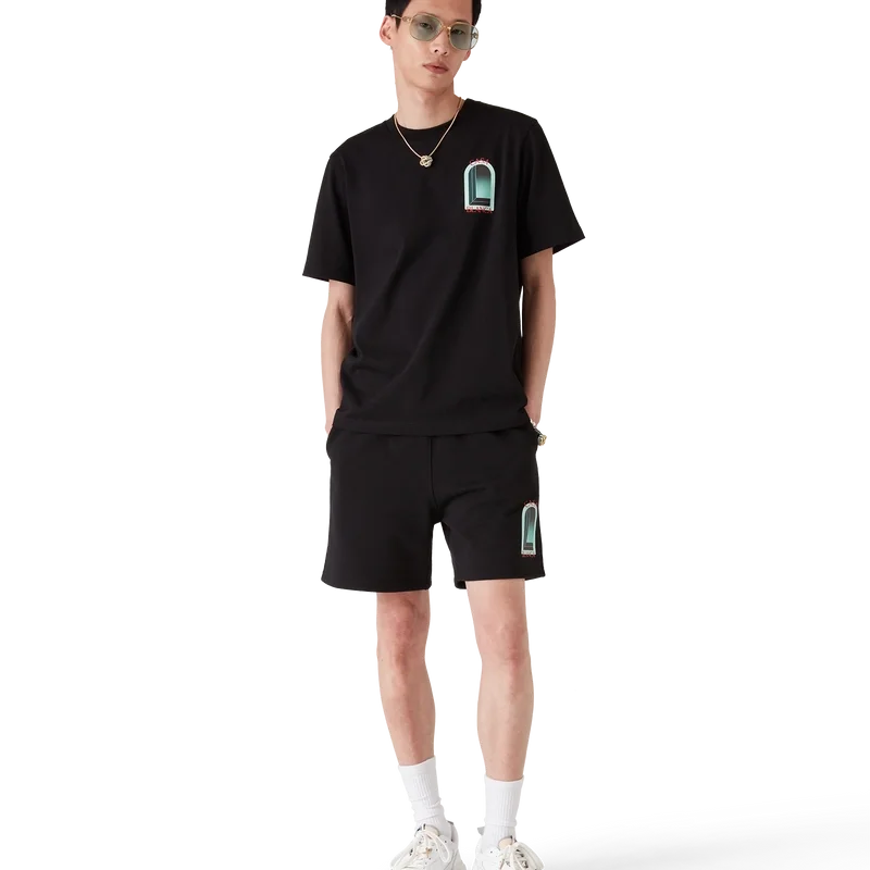 Die bedruckten L’arche-Sweatshorts sind ein Sportbekleidungsdesign aus Bio-Baumwollstoff und zeigen das saisonale Kunstwerk des Hauses, das für diese Saison neu interpretiert wurde. Abgerundet durch einen elastischen Bund, einen Kordelzug mit goldenen Enden, Nahttaschen und eine aufgesetzte Gesäßtasche.
