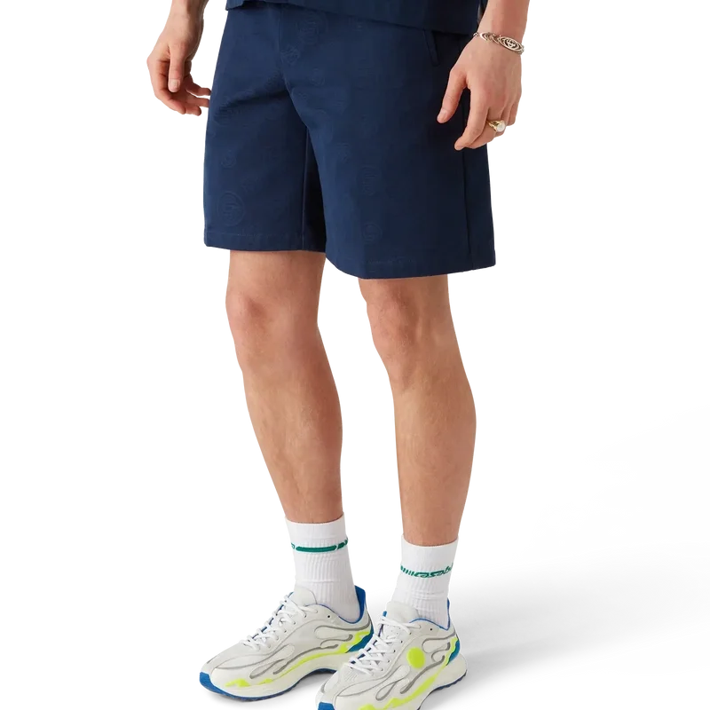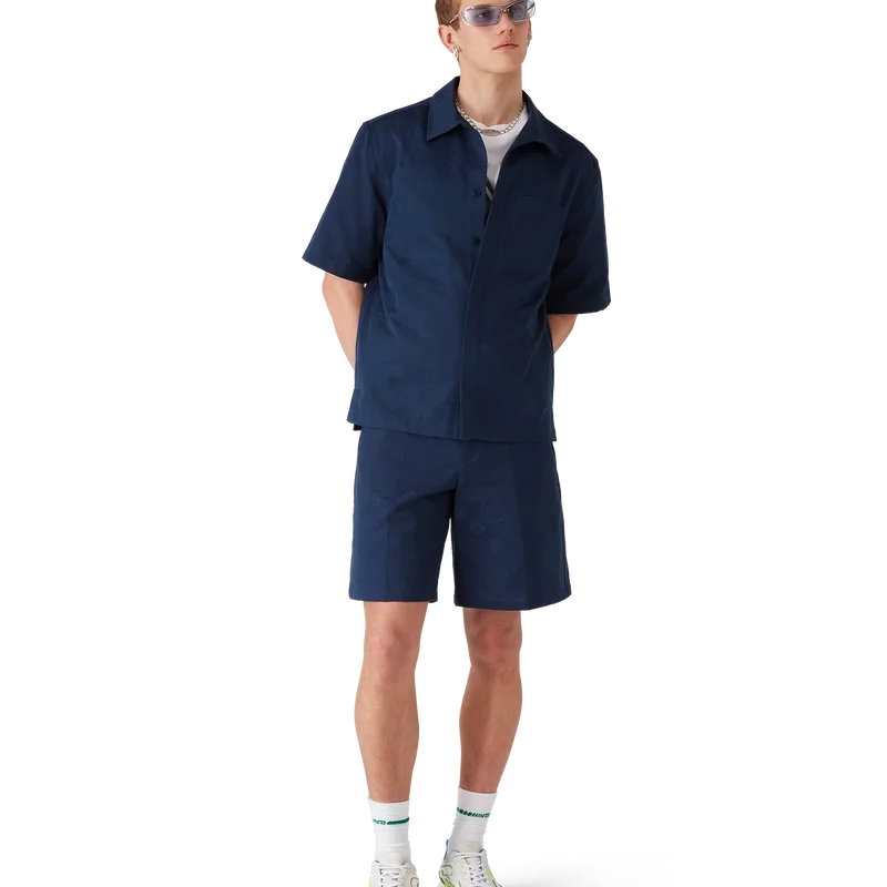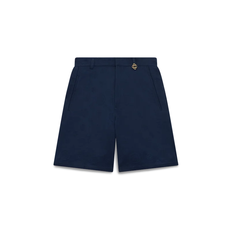 Die marineblauen Monogram-Shorts sind ein raffiniertes, knielanges Modell mit dem ikonischen Monogram-Muster des Hauses. Abgerundet durch einen Bund, Gürtelschlaufen mit dem ineinander verschlungenen CC-Logo-Nieten des Hauses, einen Reißverschluss, schräge Vordertaschen und Gesäßtaschen.