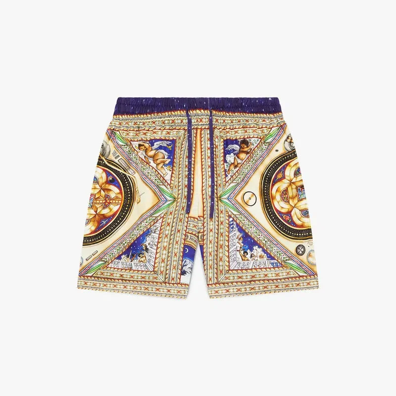 Die Plafond Orne De Musique Seidenshorts sind ein raffiniertes Design aus Seidentwill, das mit Kunstwerken verziert ist, die von den kunstvollen und aufwendigen bemalten Decken der Renaissance inspiriert sind und die zeitlosen Themen Musik und Tanz darstellen. Abgerundet durch einen elastischen Bund, einen Kordelzug, ein Futter, Seitentaschen in den Beinen und eine aufgesetzte Gesäßtasche.