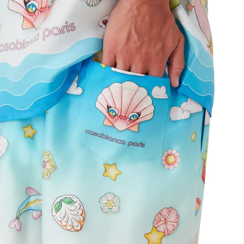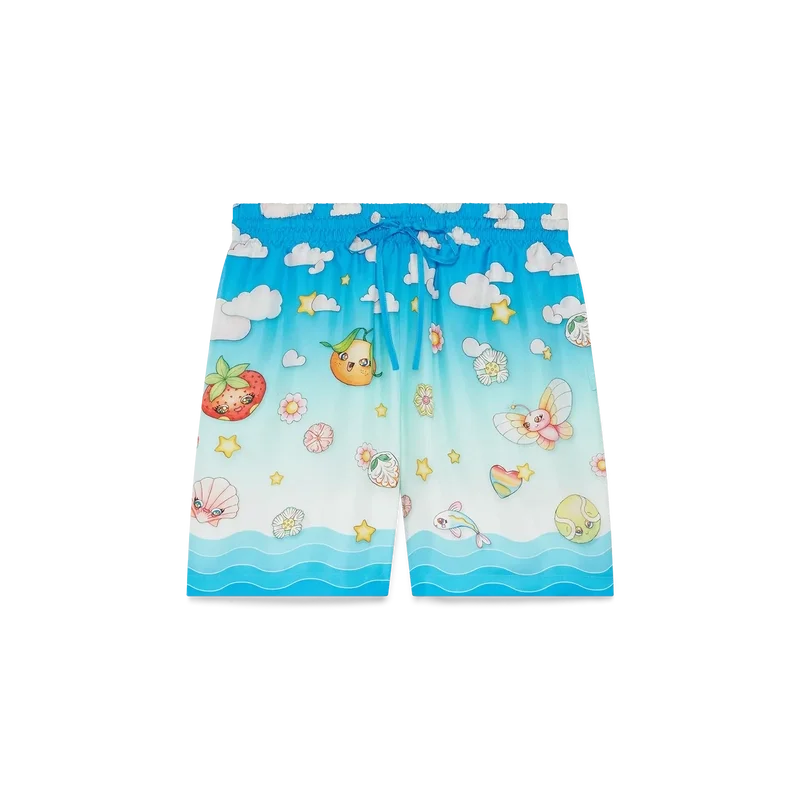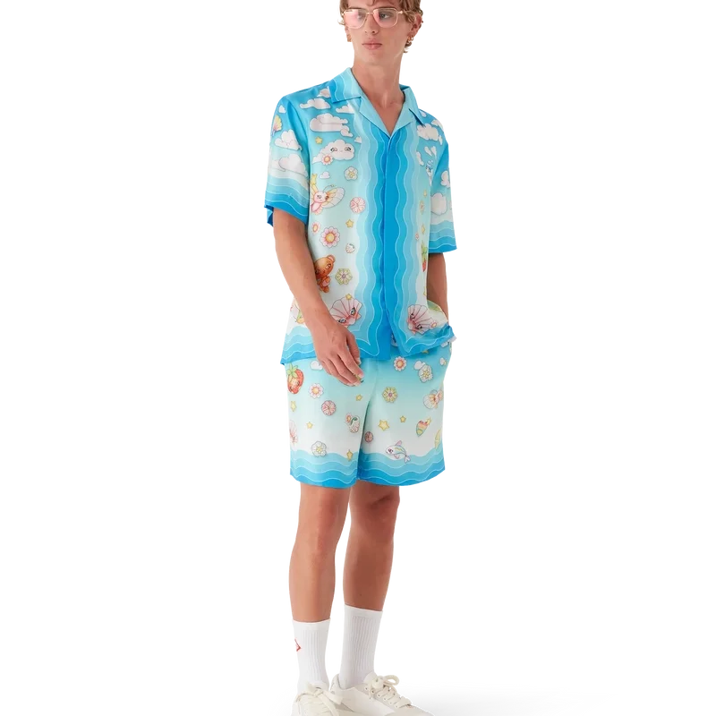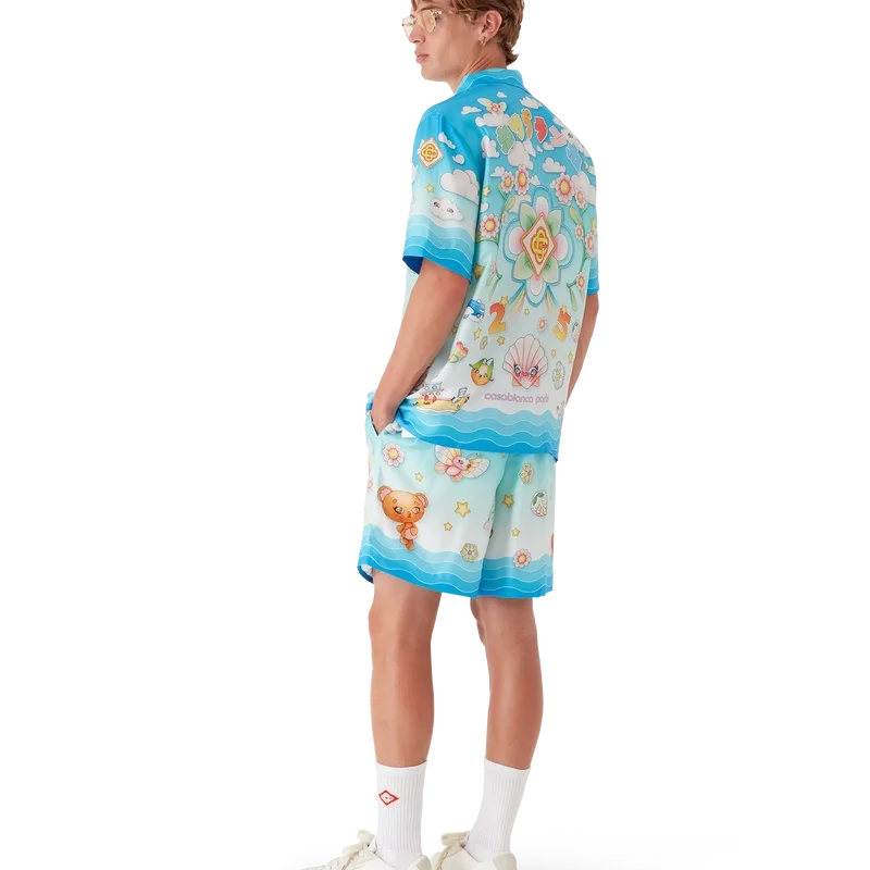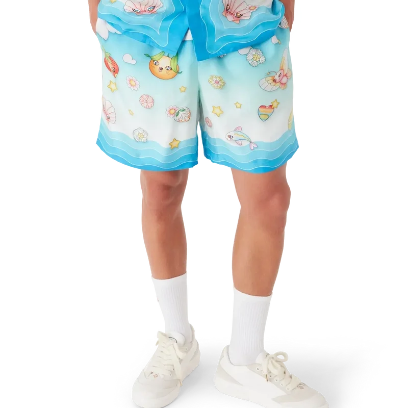 Die Seidentwill-Shorts mit Kawaii-Motiv sind rundum bedruckt und zeigen Kawaii-Elemente. Dies ist eine Kawaii-Version unseres Tennis-Club-Designs, bei der die Kawaii-Elemente in der Mitte platziert sind. Die Farbpalette dieses Hemds besteht hauptsächlich aus Pastelltönen. Abgerundet durch einen elastischen Bund, einen Kordelzug, Eingrifftaschen, eine aufgesetzte Gesäßtasche, ein Futter und von der Memphis-Welle inspirierte Saumdetails.