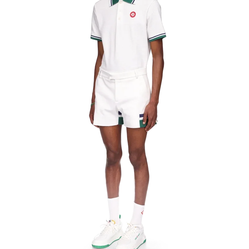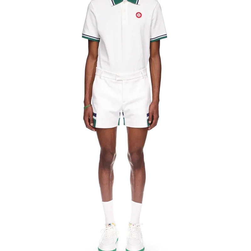 Die Sports Tailoring Shorts sind aus einem Baumwollmischgewebe gefertigt und mit dem charakteristischen Rautenlogo des Hauses versehen. Ausgestattet mit schrägen Vordertaschen, Futter, aufgesetzten Gesäßtaschen, Gürtelschlaufen, Reißverschluss und kontrastierenden blauen, weißen und grünen Einsätzen am Saum.