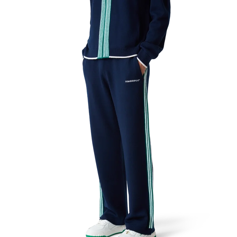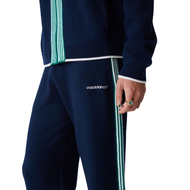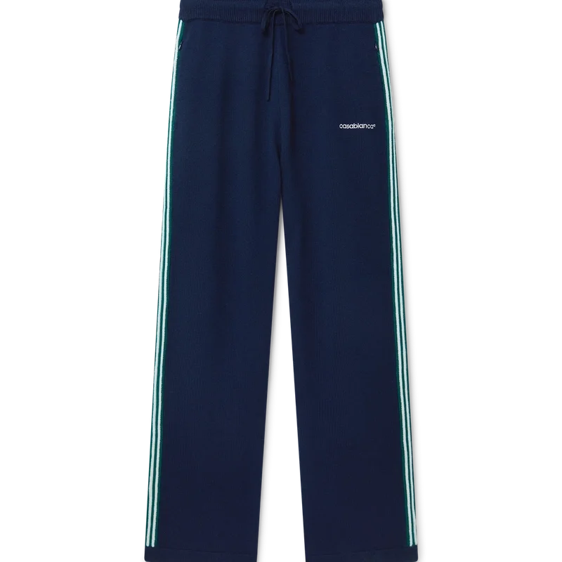 Die gestrickte Tennis-Hose hat ein von Sportbekleidung inspiriertes Design und ist aus Merinowolle gefertigt. Mit kontrastierenden Rippbündchen an Ärmelenden, Saum, Kragen und Knopfleiste, Reißverschluss vorne, Trichterkragen und Casablanca-Logo.