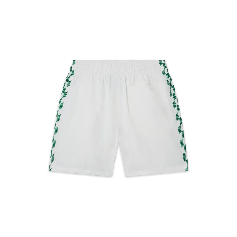 Sportlicher Luxus trifft auf Retro-Charme mit unseren weißen Tennis Horizon Shells Trainingsanzügen aus Polyester. Der sportliche Stil vereint ein saisonales Design mit der klassischen Silhouette einer Laufhose und einem elastischen Bund.