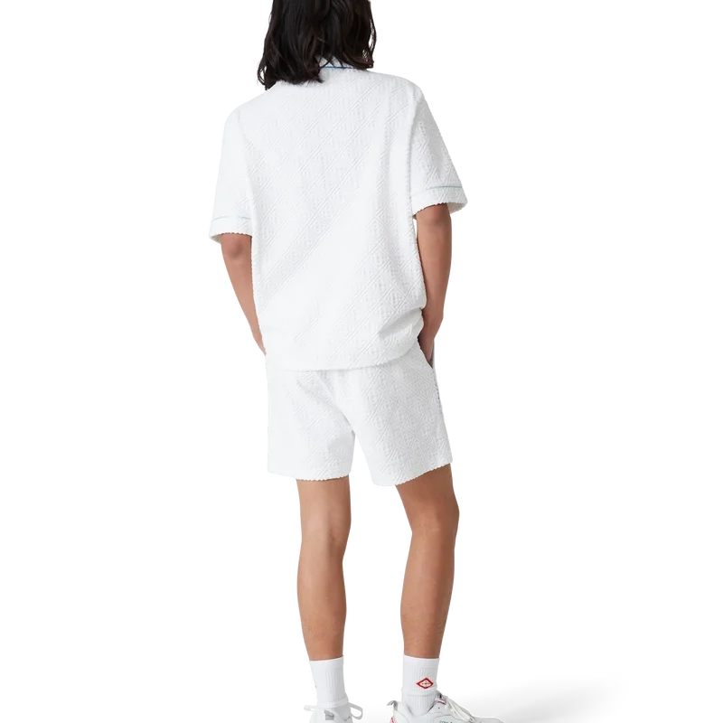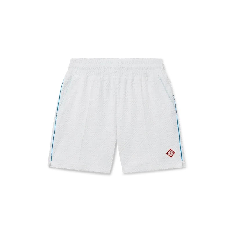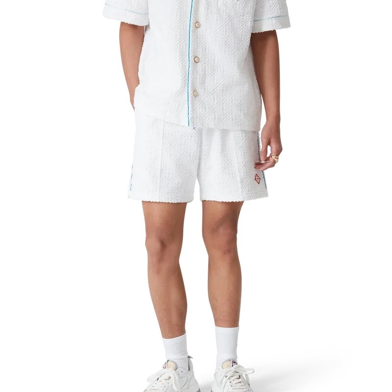 Die Monogram-Frottee-Shorts sind ein klassisches Design aus Monogram-Frottee mit dem Diamant-Logo des Hauses. Sie verfügen über einen elastischen Bund, einen innenliegenden Kordelzug mit goldfarbenen Enden, Biesen an der Vorderseite, eine Gesäßtasche mit Reißverschluss, schräge Seitentaschen sowie Paspeldetails an den Vorder- und Gesäßtaschen sowie an den Seiten.